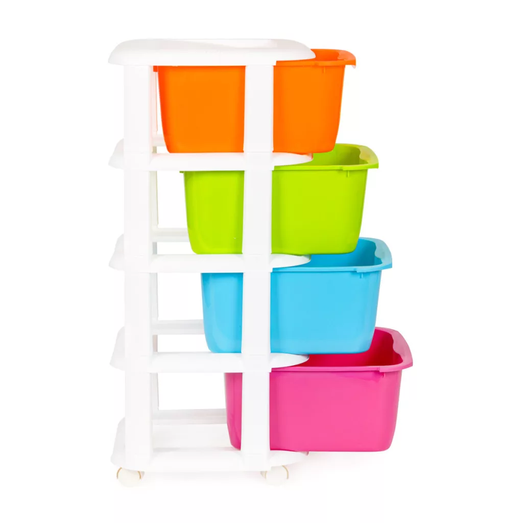 Guruló fiókos játéktároló szekrény 4 részes, pasztel 36x35.5x74 cm