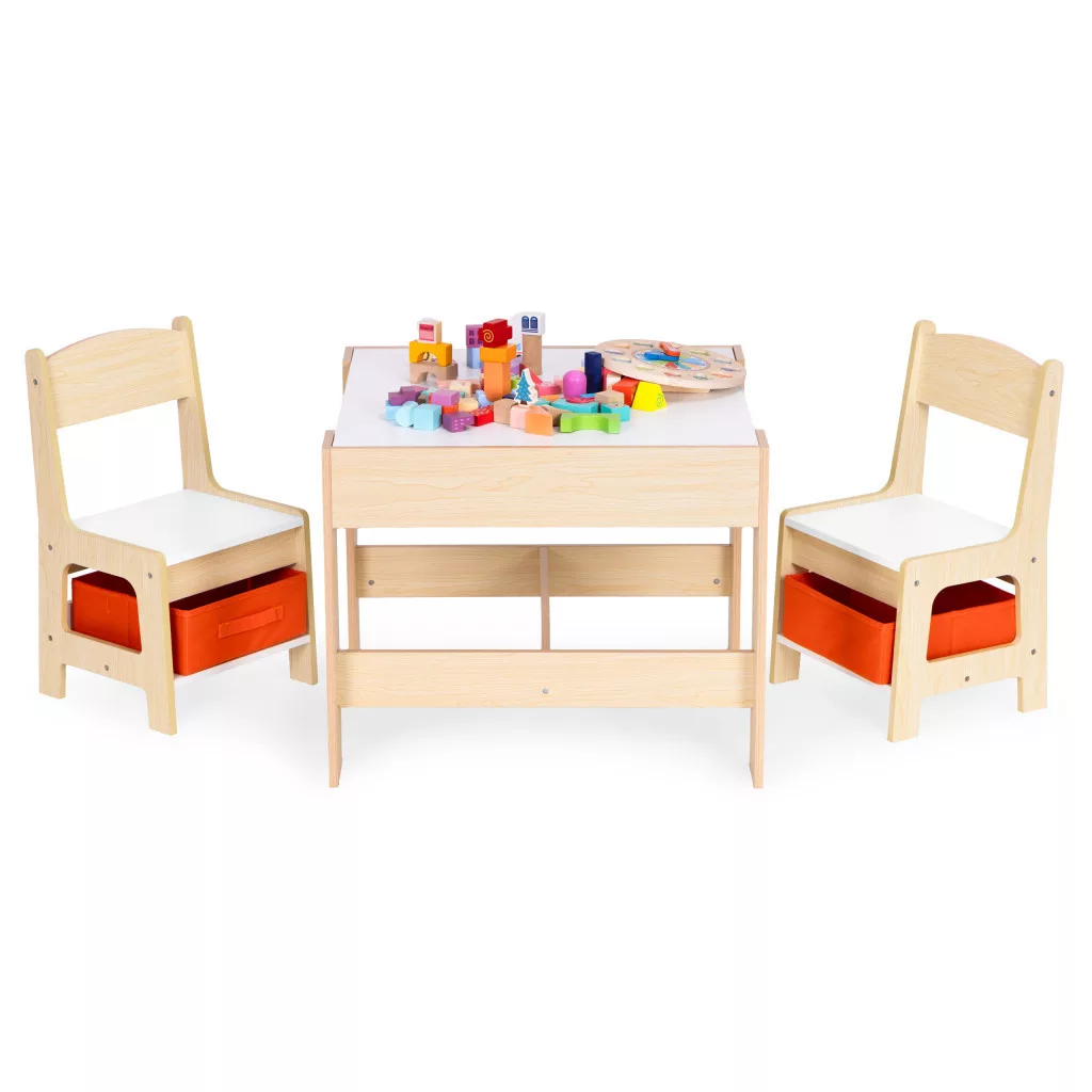 Az ECOTOYS gyerekbútor-garnitúrája tökéletes megoldás azoknak a szülőknek, akik praktikus, biztonságos és stílusos bútorokat keresnek gyermekük szobájába. A garnitúra tartalmaz egy kétoldalas asztallappal ellátott asztalt és két széket, amelyek mindegyike szövetből készült fiókkal van felszerelve az ülés alatt. Ezáltal még a legkisebb gyerekek is könnyen rendet tarthatnak a környezetükben, és már kiskoruktól kezdve tanulhatják a szervezkedést.