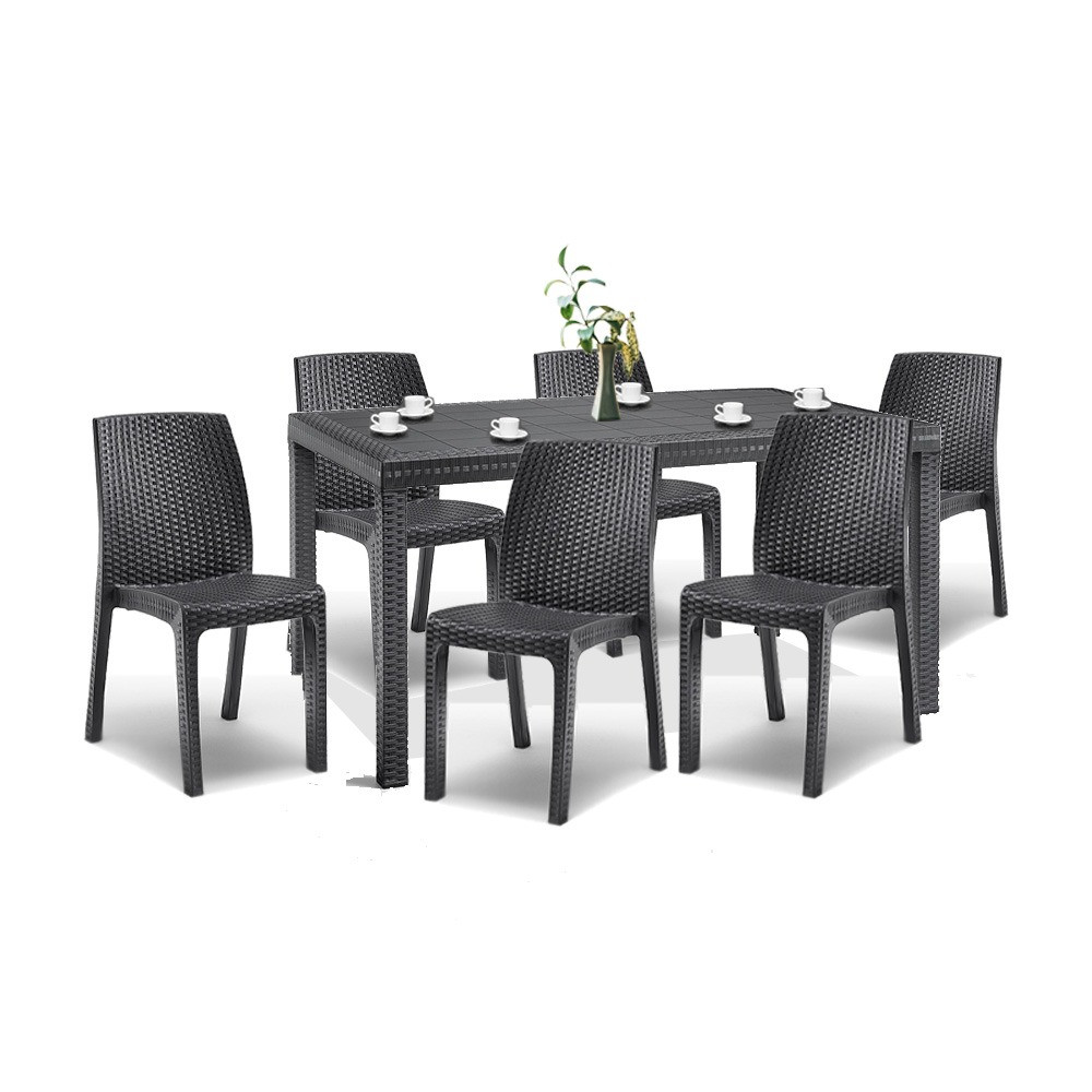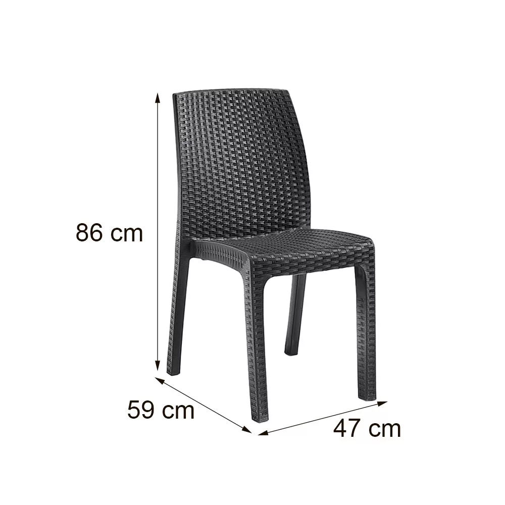 Olaszországban készült ez a grafit színű, kényelmes és elegáns bútor szett. Hat 47x 59x 86 cm-es széket és egy 150x 90x 74 cm-es négyszögletes magas asztalt foglal magába. Méretén és kényelmén kívül kedvező lehet, hogy összeszerelése nem igényel szakmai tudást és könnyen mozgatható, így mindig oda teheted ahol éppen szükséged van rá.
