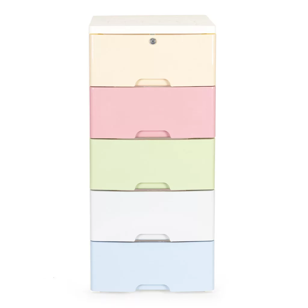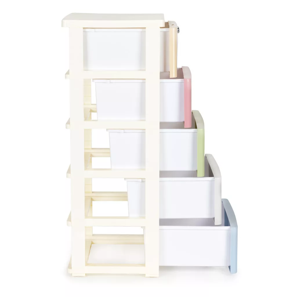 A polc öt színes fiókból áll, amelyek elején egy speciálisan profilozott fogantyú található , ami megkönnyíti a be- és kihúzásukat.