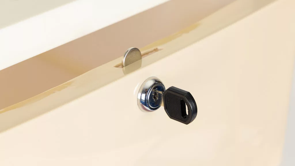 Az egyedi felső fiók biztonságos zárral és kulccsal rendelkezik. Tökéletes megoldás azoknak a szülőknek, akik bizonyos tárgyakat vagy játékokat szeretnének tárolni , amelyek felügyeletet és ellenőrzést igényelnek.