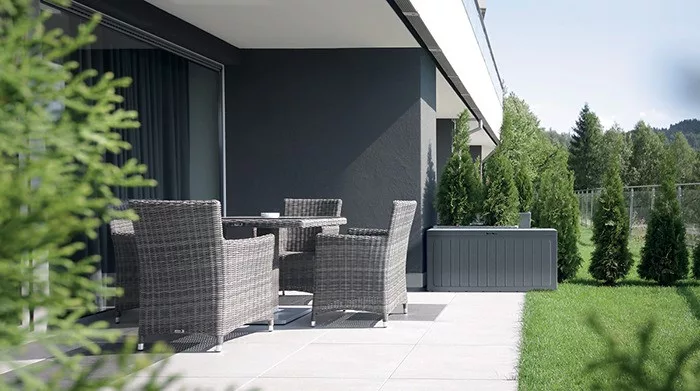 Praktikus és stílusos tárolóhely a kertbe vagy az erkélyre – a Prosperplast BOXE BOARD kerti tároló 290 literes űrtartalmával bőséges helyet biztosít párnáknak, szerszámoknak vagy játékoknak. Tartós műanyagból készült, modern umbra színű kivitelben, amely hosszú élettartamot és esztétikus megjelenést garantál. A 116,6 × 47 × 59,5 cm méretű könnyű, mégis masszív tárolót szerszám nélkül is egyszerűen összeszerelheti.