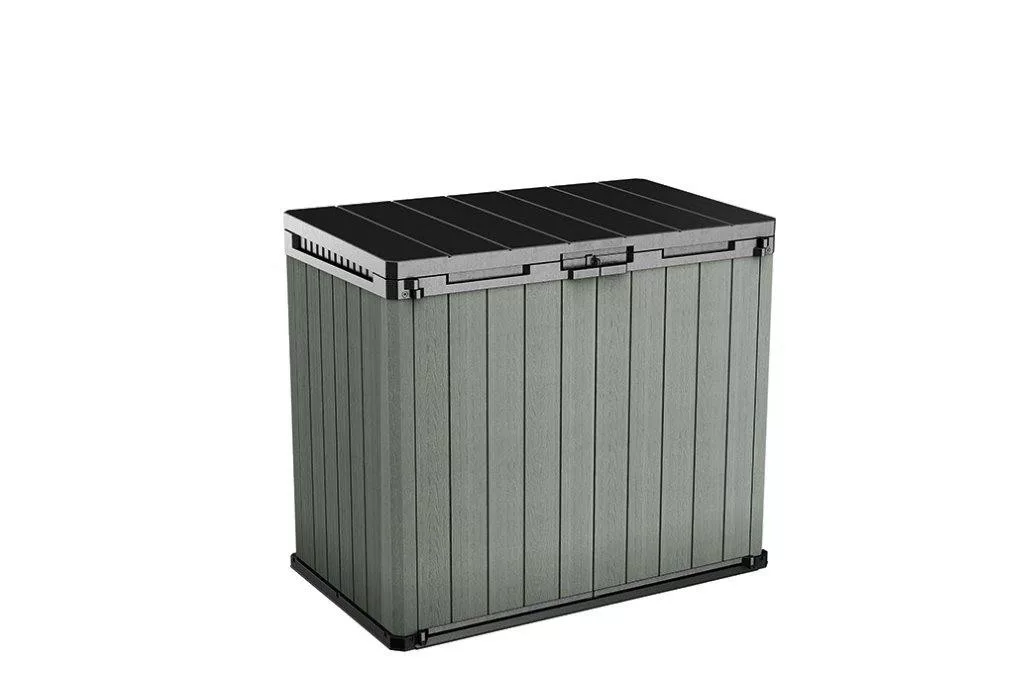 Helyezze el a tárolódobozt az Ön számára legideálisabb helyre a kertben vagy a teraszon. A fa hatású struktúrának köszönhetően bármilyen környezetbe remekül illeszkedik. A tárolt tárgyakat lakattal is biztonságosan lezárhatja (a lakat nem tartozék). A beépített szellőzőrendszer pedig védi a tárolt dolgokat a nedvességtől.