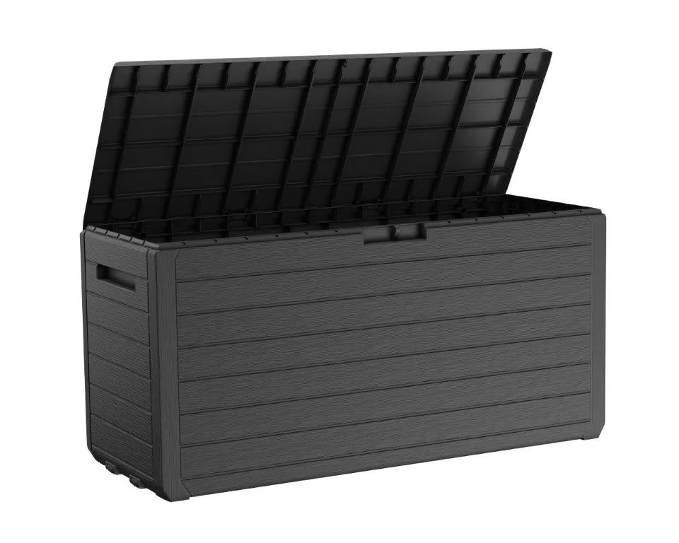 Keter Atlas 270 l kerti tároló grafitszürke színben, faimitációval stílusos tárolási megoldást nyújt kertje vagy terasza számára. A tároló ideális kerti bútorok, szerszámok vagy játékok tárolására – időjárásálló és zárható fedéllel rendelkezik a maximális biztonság érdekében.