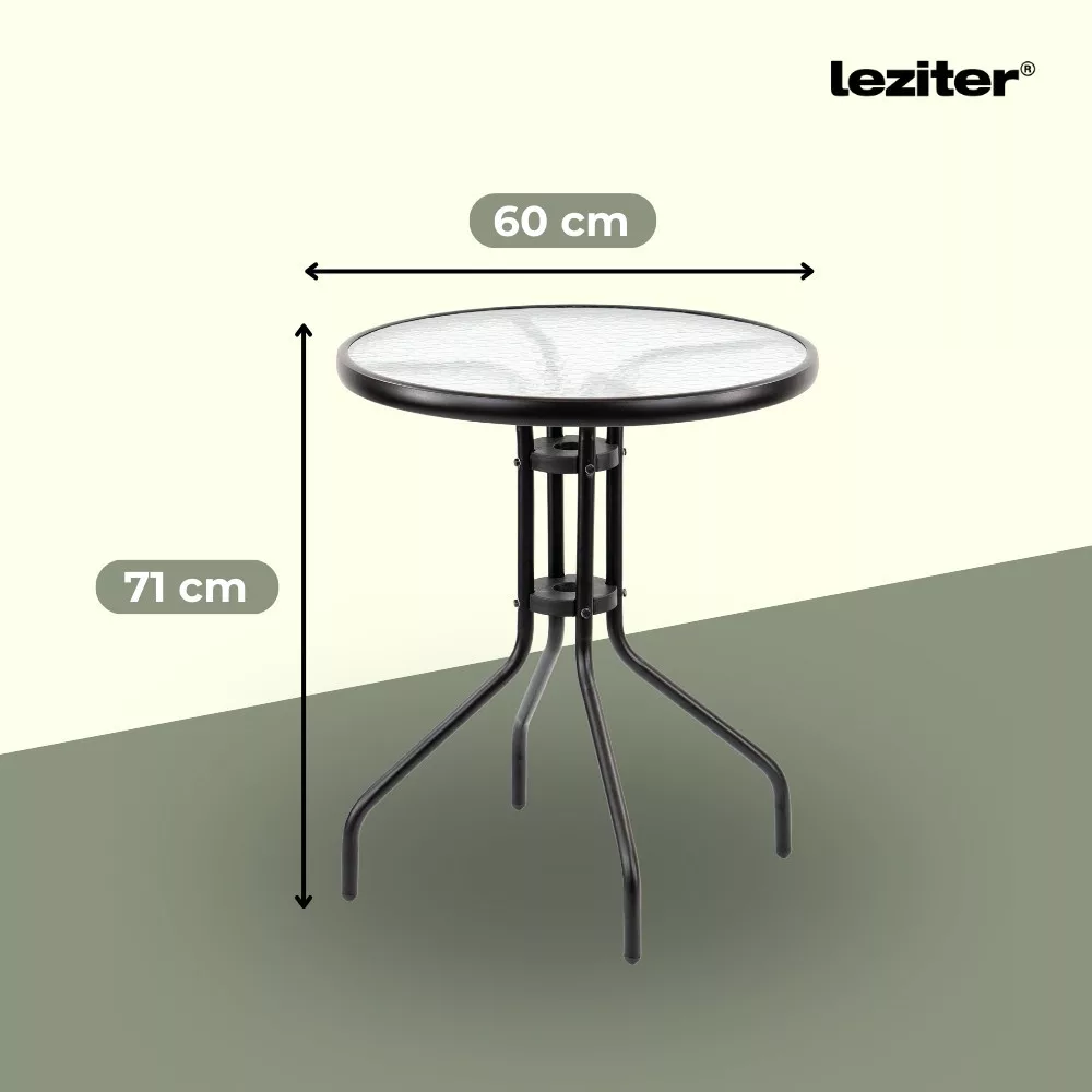 Az Andora asztal fekete fémváza eleganciát és modern megjelenést kölcsönöz, miközben tartósságot és stabilitást garantál. Az üveglap tiszta és letisztult, könnyen tisztítható. Ideális méretei köszönhetően akár négyen is kényelmesen élvezhetik a szabadban töltött időt, legyen szó reggeli kávézásról, baráti összejövetelekről vagy esti beszélgetésekről.