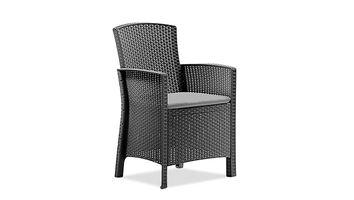 Ez egy igazán elegáns és kényelmes kerti szék, kompletten párnával ellátva. A grafit szín és az eredeti, rattanra emlékeztető felület a legtöbb felhasználó tetszését elnyeri. Tartós, az időjárás viszontagságainak és az UV sugárzásnak ellenálló műanyagból készült. Könnyű tisztán tartani és nagyon egyszerű összeszerelni. A Lima Balcony szettünkkel, vagy más kerti bútorainkkal jól kombinálható bútordarab.