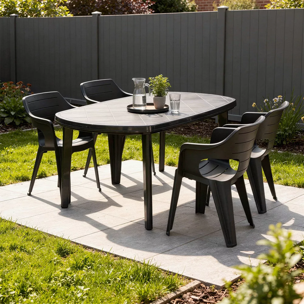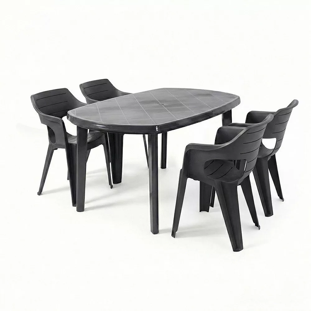 A Lino 4+1 kerti bútor garnitúra szett grafit színben ideális erkélyre, kisebb teraszra vagy kertbe, ahol fontos a kényelem és a praktikus használat.