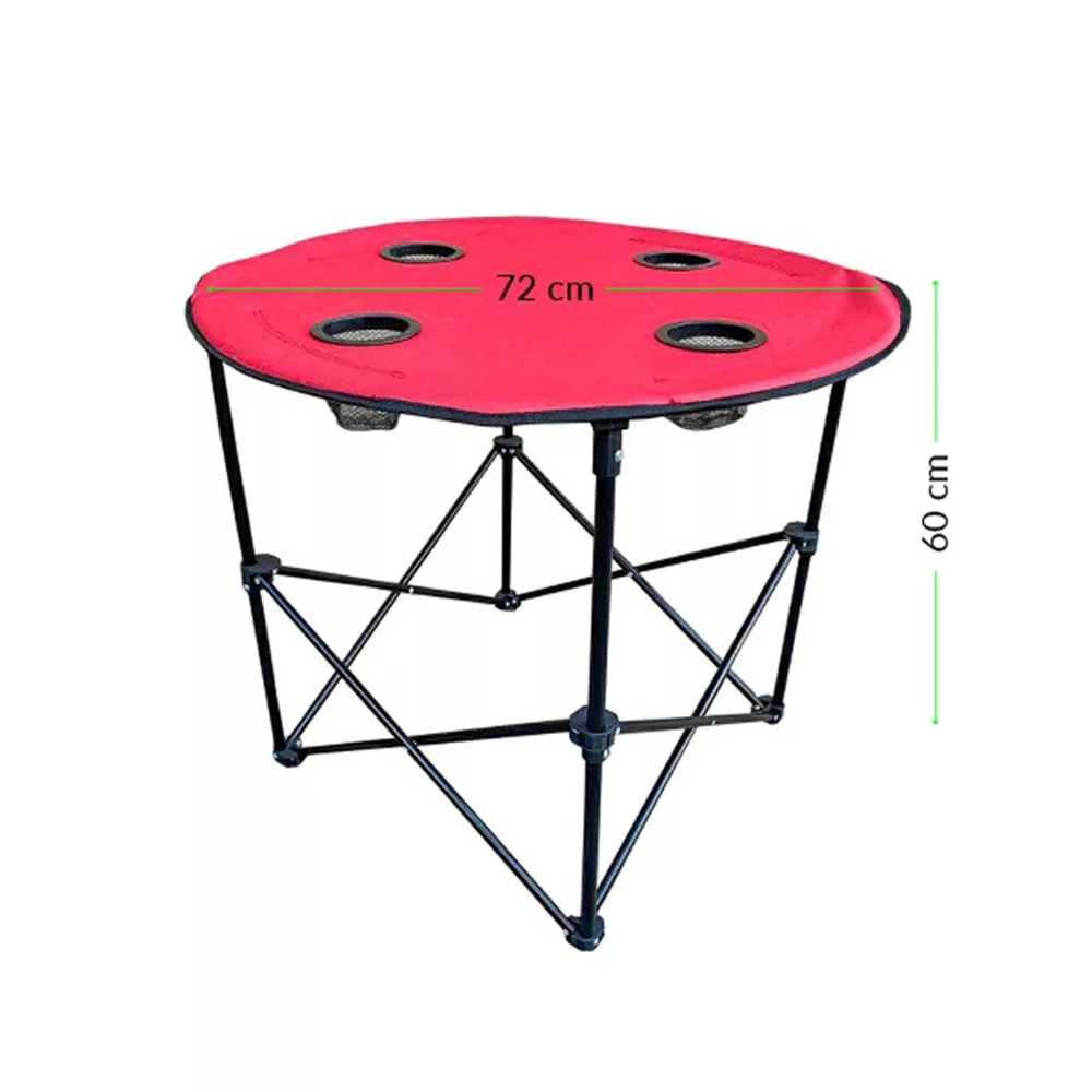 Az összecsukható kempingasztal mindenféle kirándulásra tökéletes. Az acélkeretből és 600D oxfordból készült, PE bevonattal ellátott összecsukható kemping asztalok hosszabb élettartamot élveznek.További előny a beépített csésze- vagy palacktartó. Kis méreteinek és összecsukható lehetőségének köszönhetően a kemping asztal kevés helyet foglal el, és könnyen tárolható.
