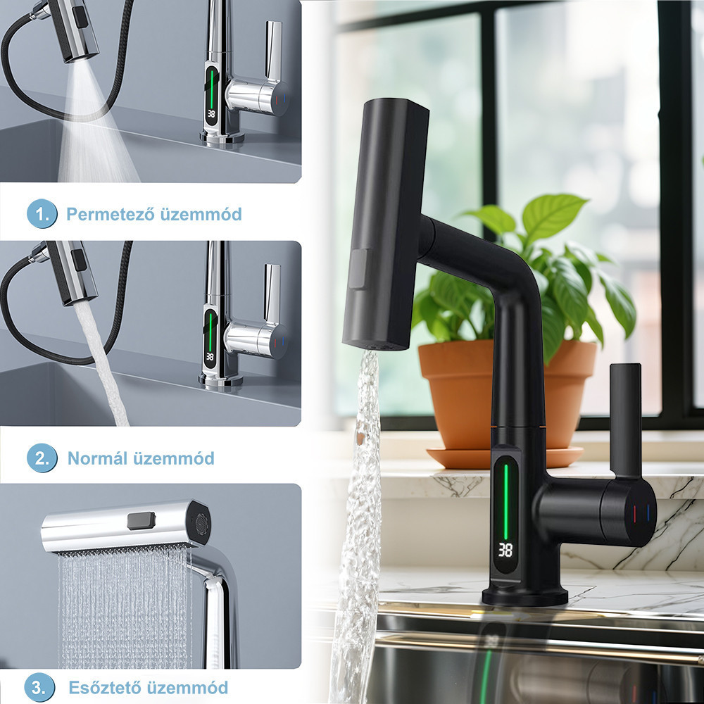 A csaptelep három különböző vízsugár opcióval rendelkezik: