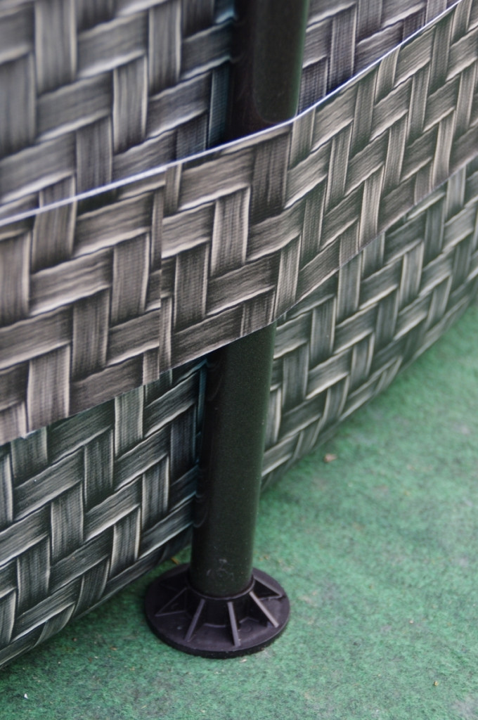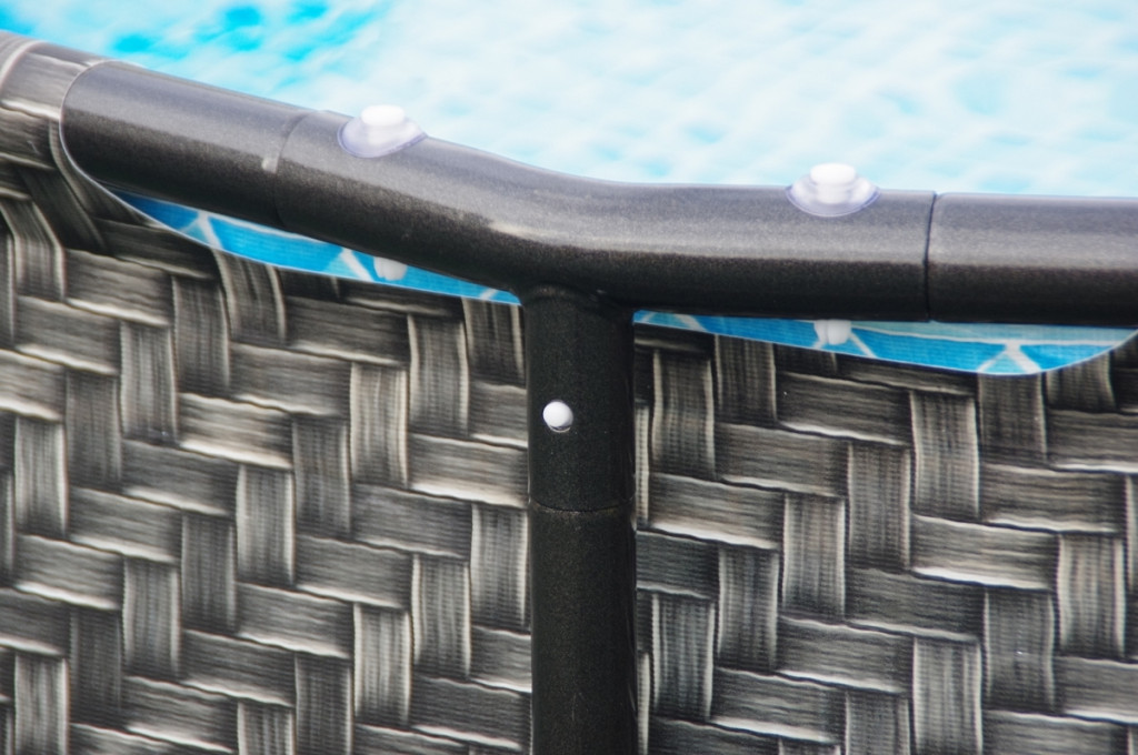 A háromréteges laminált PVC anyag különleges Polystrength kialakításban nagyobb ellenállást nyújt a kijukadás ellen. A medence külső fala mintája a természetes rattan színét és struktúráját utánozza. Gyönyörűen beolvad a környező növényzettel és nem zavarja meg úgy, mint a kék válatozata. A minőségi rétegek és a technológiailag pontos kialakítás hosszantartó gond nélküli használatot biztosít.