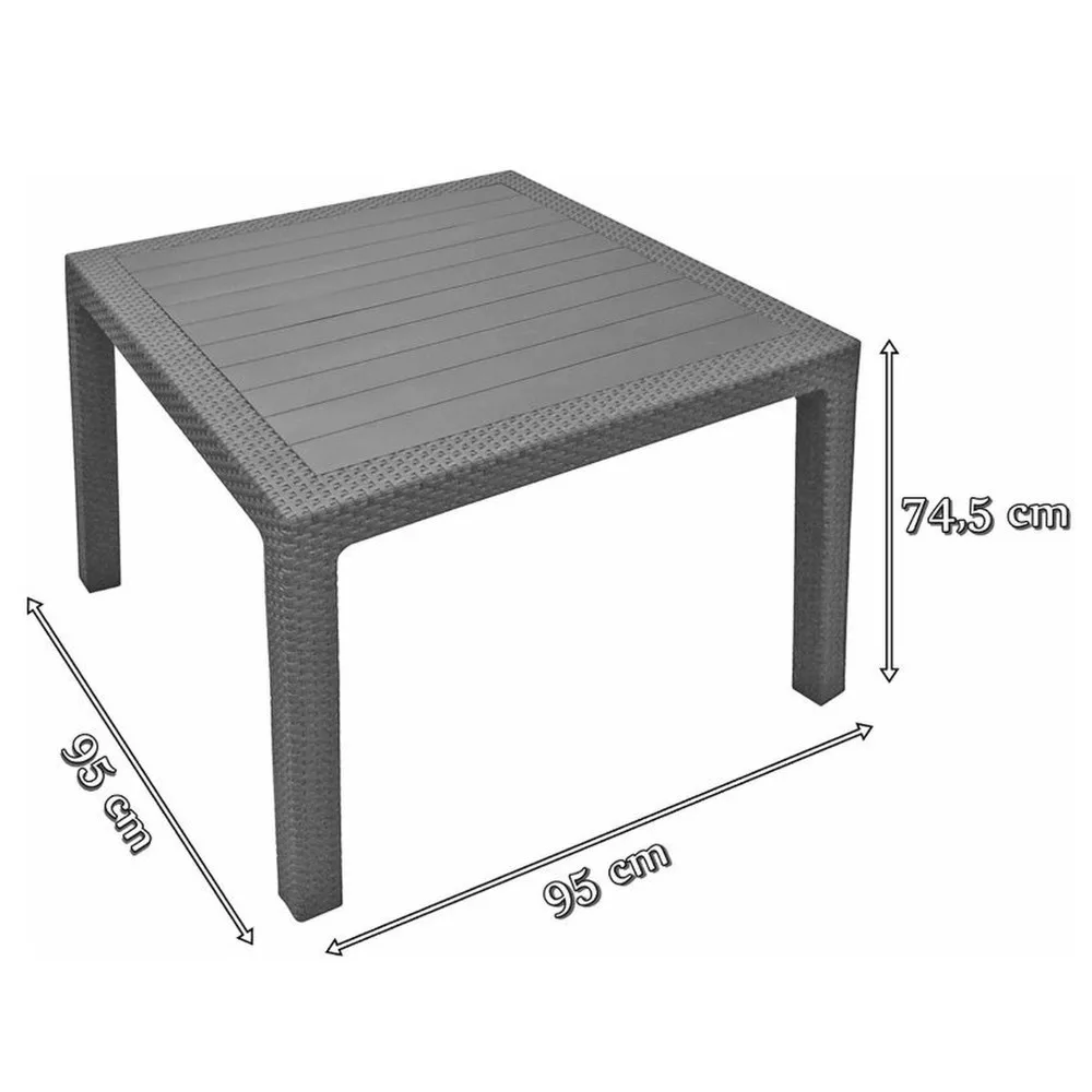 Strapabíró anyaga: UV sugárzásnak és az időjárás viszontagságainak ellenálló műanyagból készült. Az asztal ideálisan beleillik minden ház körüli térbe, ahol ideális helyet teremt a szabad levegőn való pihenéshez. Rattan fonat inspirált felülete a termék esztétikai előnyei közé sorolható.