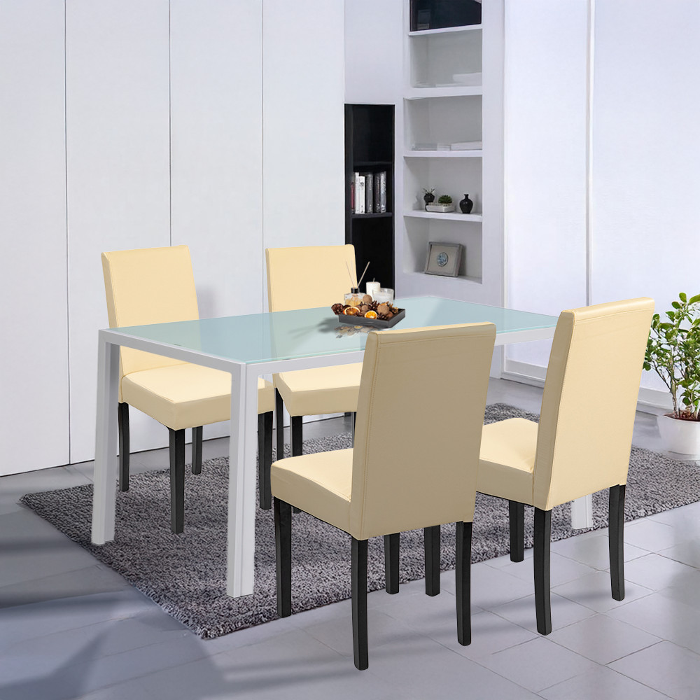 Te is unod már a billegő asztalokat és a kényelmetlen, nyikorgó székeket, amelyek elrontják a közös étkezések hangulatát? A családi vacsorák, ünnepi alkalmak vagy baráti összejövetelek során mindenki kényelmet és stílust keres – de egy instabil asztal vagy nehezen tisztítható felületek csak bosszúságot okoznak. Főleg, ha kisgyermekekkel vagy gyakori vendégekkel élsz együtt, ez folyamatos stressz forrása lehet. A Leziter Mira 4+1 étkezőgarnitúra fehér-bézs színben ezt a problémát végleg megoldja: elegáns szett, amely négy kényelmes széket és egy stabil, modern üveg étkezőasztalt kínál — tökéletes választás otthonra, irodába vagy vendéglátóhelyekre egyaránt.