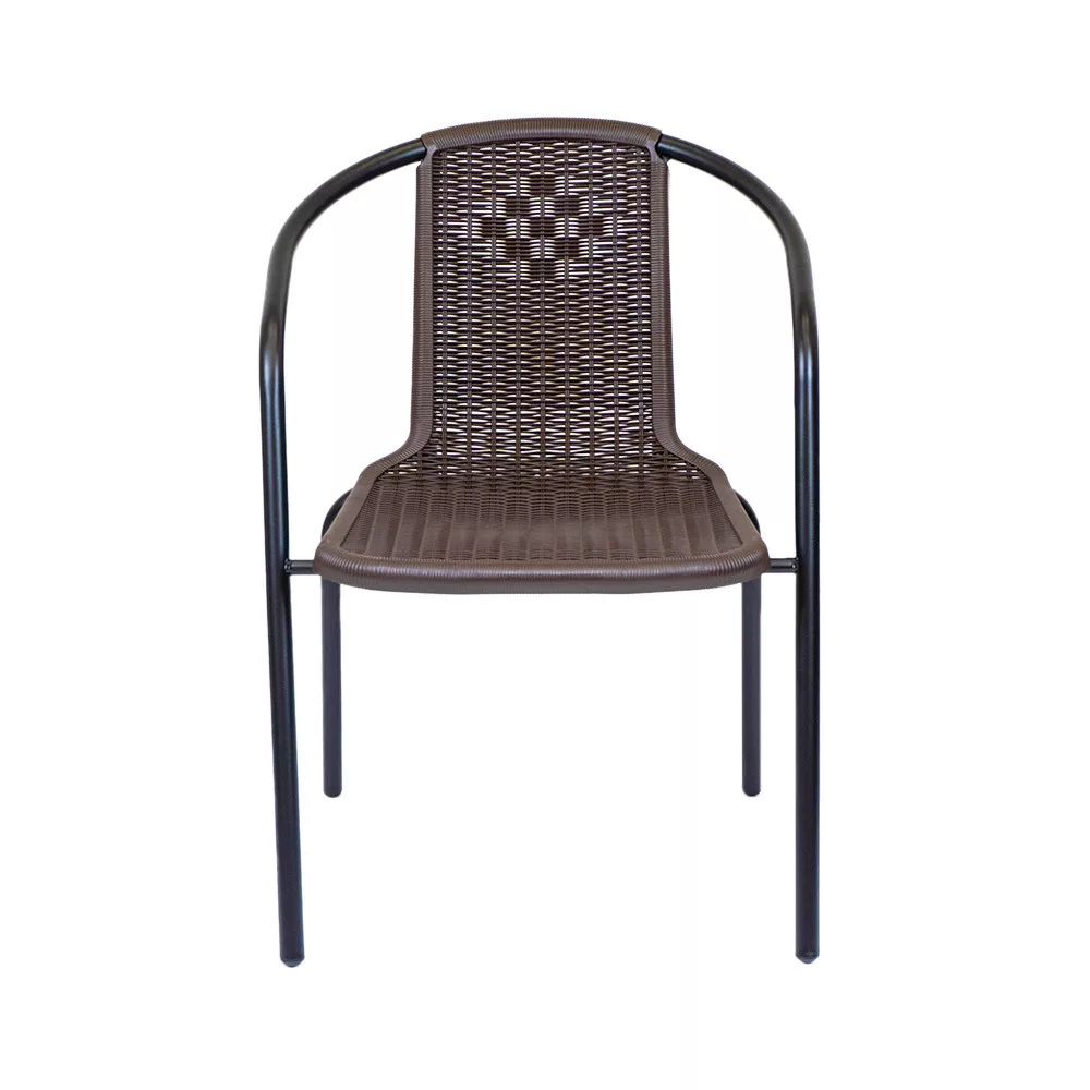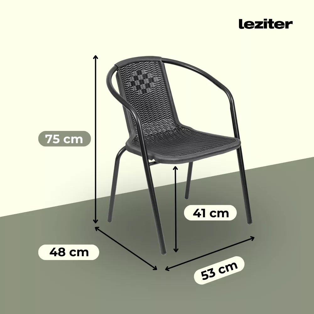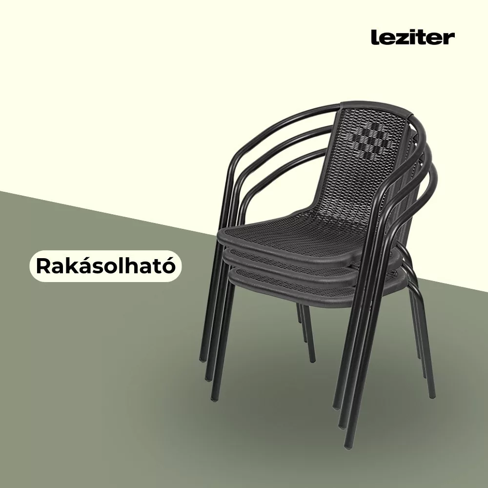 Ez egy egyszerű és nagyszerű modern kerti szék, ami rattan hatású fonott ülőfelülettel rendelkezik. Kiválóan alkalmas étkezéshez és a szabadban történő pihenéshez is. Akár lakossági, de üzleti használatra is tökéletes, például éttermek, bisztrók, szórakozóhelyek számára. Nagyon praktikus, mert egymásra helyezhető, azaz rakatolható, így a tárolása egyszerű, nem foglal sok helyet. Acélvázának köszönhetően stabil és masszív kivitel, időtálló megoldás, műanyag felületének köszönhetően könnyen tisztántartható.