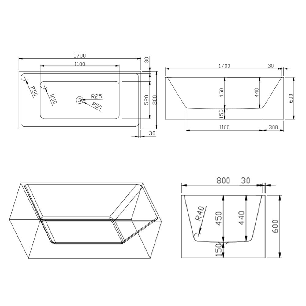 Nara szabadon álló fürdőkád 170x80x60 cm - tedd otthonod ékkövévé a Nara fürdőkádat!
