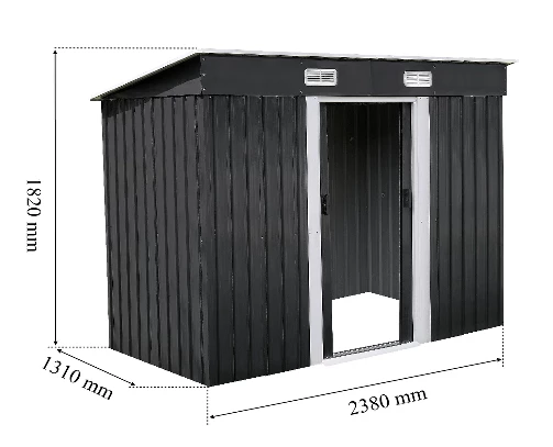 A Nebraska szerszámház nagyszerű választás az Ön kertjébe is. A ház nem igényel karbantartást és gondozást - ez vitathatatlan előnye a faházakkal szemben. A különbség kb. egy év elteltével látható, amikor a fa újabb költséges és fárasztó védelmet és karbantartást igényel, és a Nebraska kunyhó továbbra is ugyanolyan állapotban van, mint az elején! Az összeállítás nem igényel további eszközöket, ami sok időt és pénzt takarít meg a faházakkal szemben. Azok az anyagok, amelyekből a ház készült, nem rothadnak, nem bomlanak le, ellenállnak a kedvezőtlen időjárási viszonyoknak. A ház belső tere kimagasló felhasználható területtel rendelkezik. A dupla ajtó szabad hozzáférést biztosít a belső térhez. A ház ajtaját tömör fém reteszel lehet bezárni , amely lakattal is rögzíthető (a lakat nem tartozék). A háznak sárgallérja is van, amely az ajtó alatt található - szintén küszöbértékként szolgál a belépés megkönnyítéséhez, például fűnyíróval. A falhoz további elemeket is rögzíthetünk, például akasztókat vagy polcokat. A ház fala 0,27 mm vastag.