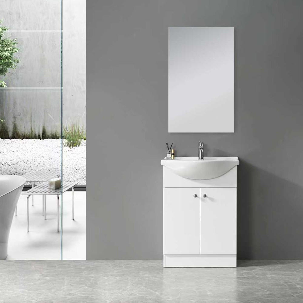 A szekrény 15 mm vastag MDF lapból készül, amelyet fényes fehér festéssel láttak el. Ez nemcsak időtálló és strapabíró, hanem könnyen tisztítható és ellenáll a fürdőszobai párának is.