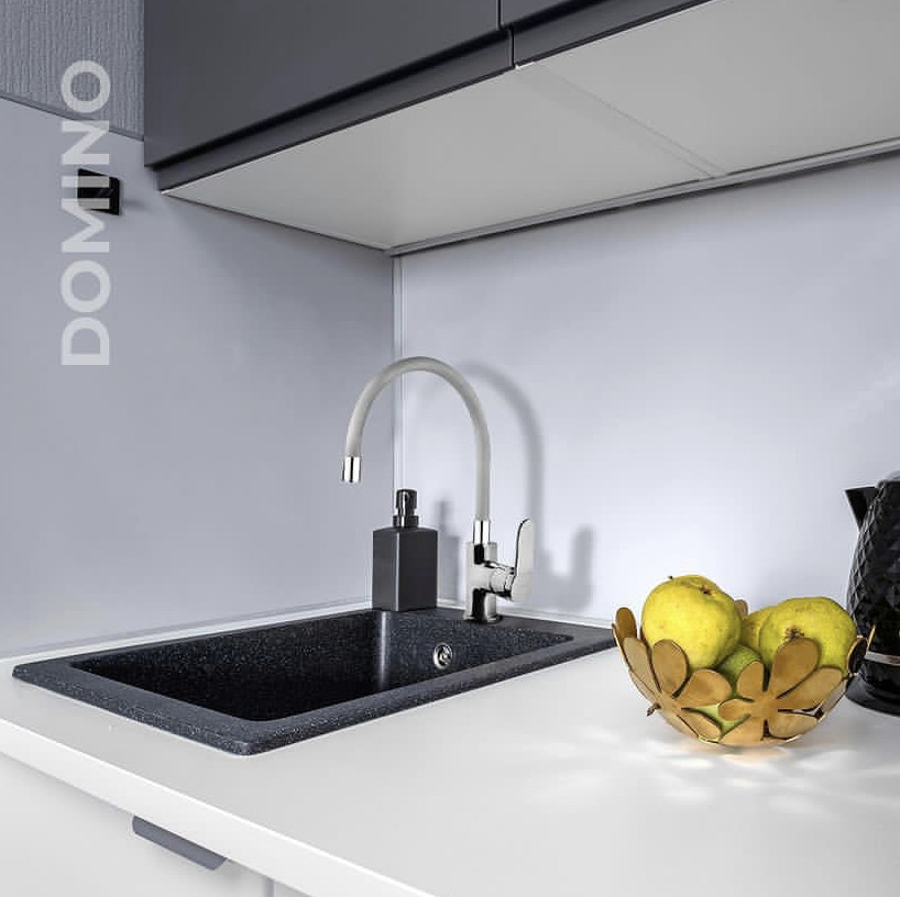 NewArc DOMINO álló mosogató csaptelep króm - FEHÉR flexibilis kifolyócsővel