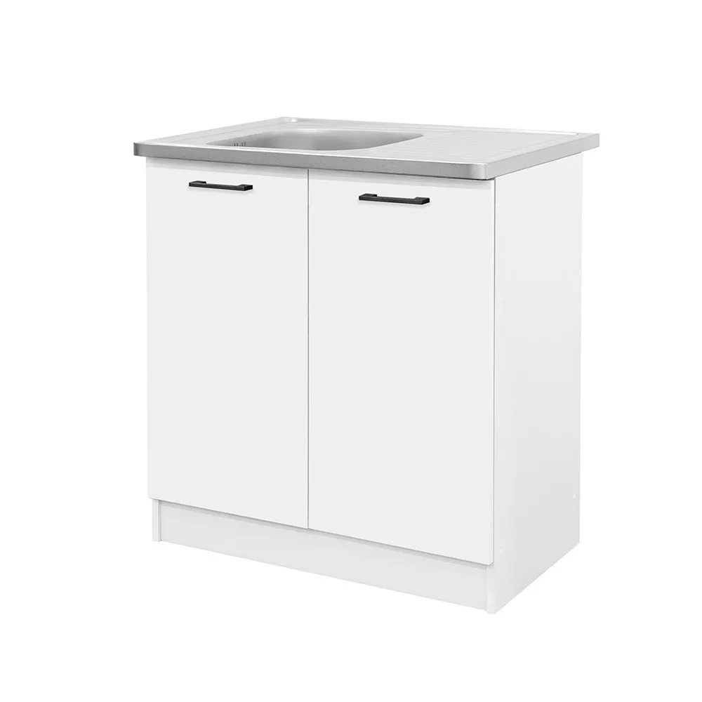 Praktik 80 alsó szekrény 2 ajtós mosogatós – fehér korpusz, fehér front