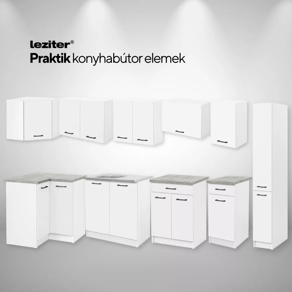 A Praktik 90 alsó sarok szekrény fehér korpusszal és fehér fronttal illeszkedik bármilyen lakberendezési stílusba. Világos színvilága optikailag tágítja a teret, ezért ideális választás kisebb konyhákba, garzonokba és nyitott amerikai konyhás nappalikba is. Letisztult formája a mai modern otthonok kedvelt megoldása.