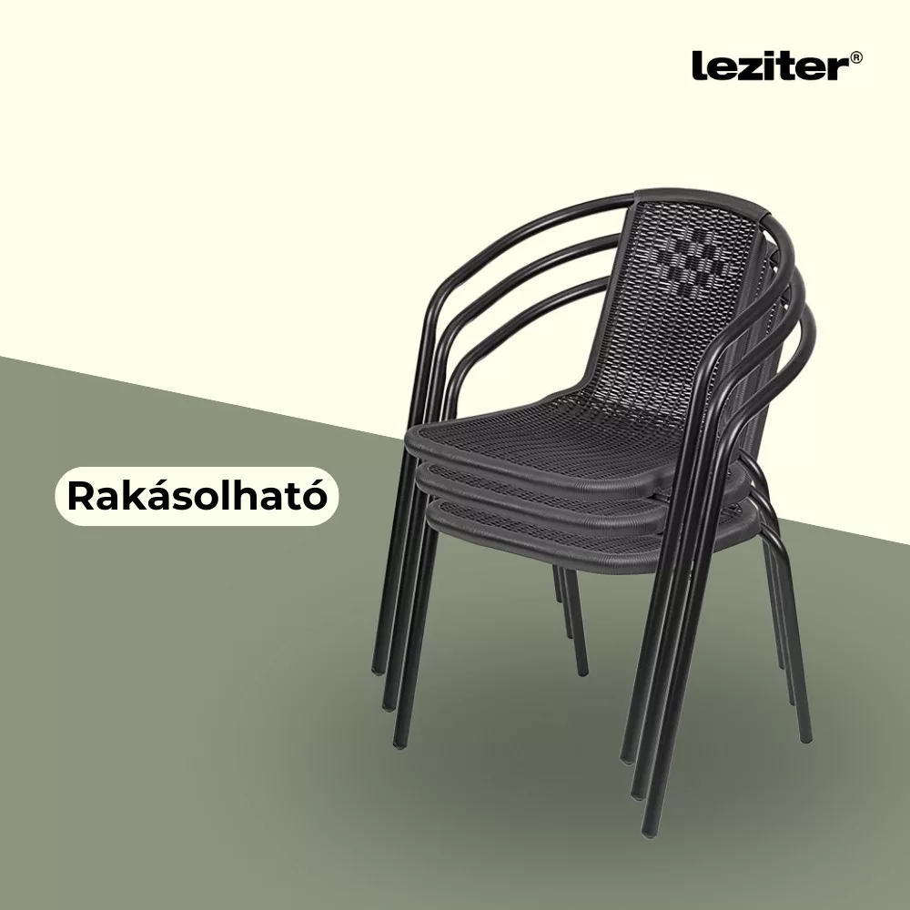 A modern kivitelű kerti bútorkészlet egy kerti üveglapos asztalt és 4 széket tartalmaz. A bútorokat 4 fő számára tervezték. A székek és az asztal lábazata acélból készül. Az asztallap 5 mm-es edzett üvegből készült, amely ellenáll a kisebb karcolásoknak. A műanyag szék ülésanyaga ellenáll az időjárási viszonyoknak. Előnye az ergonómikusan profilált ülés és karfa, amelyek tehermentesítik a vállakat pihenés közben.
