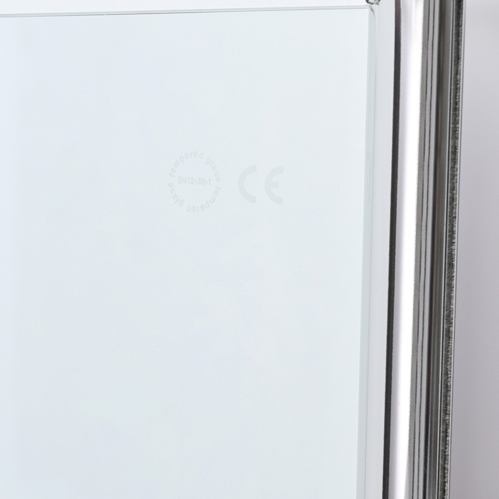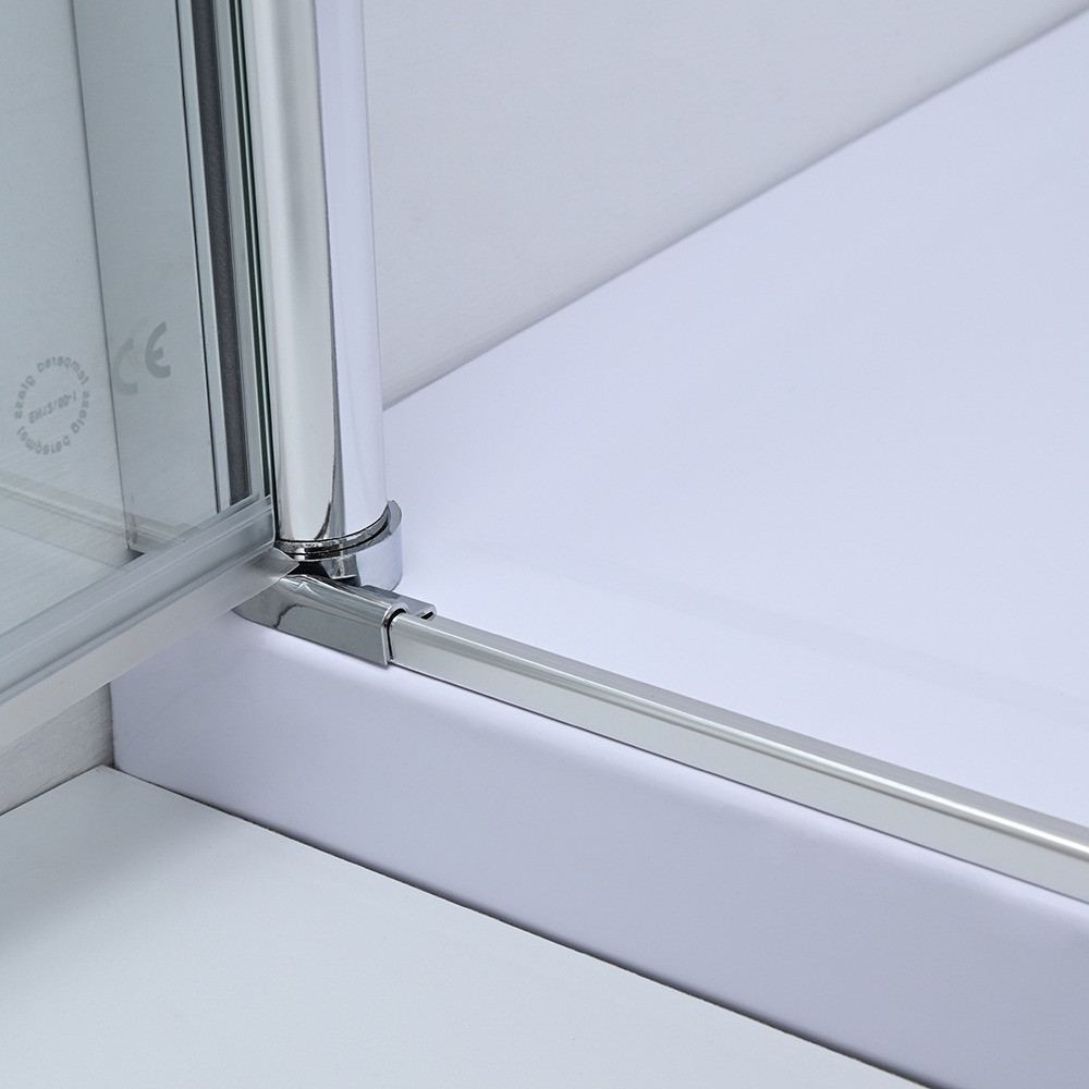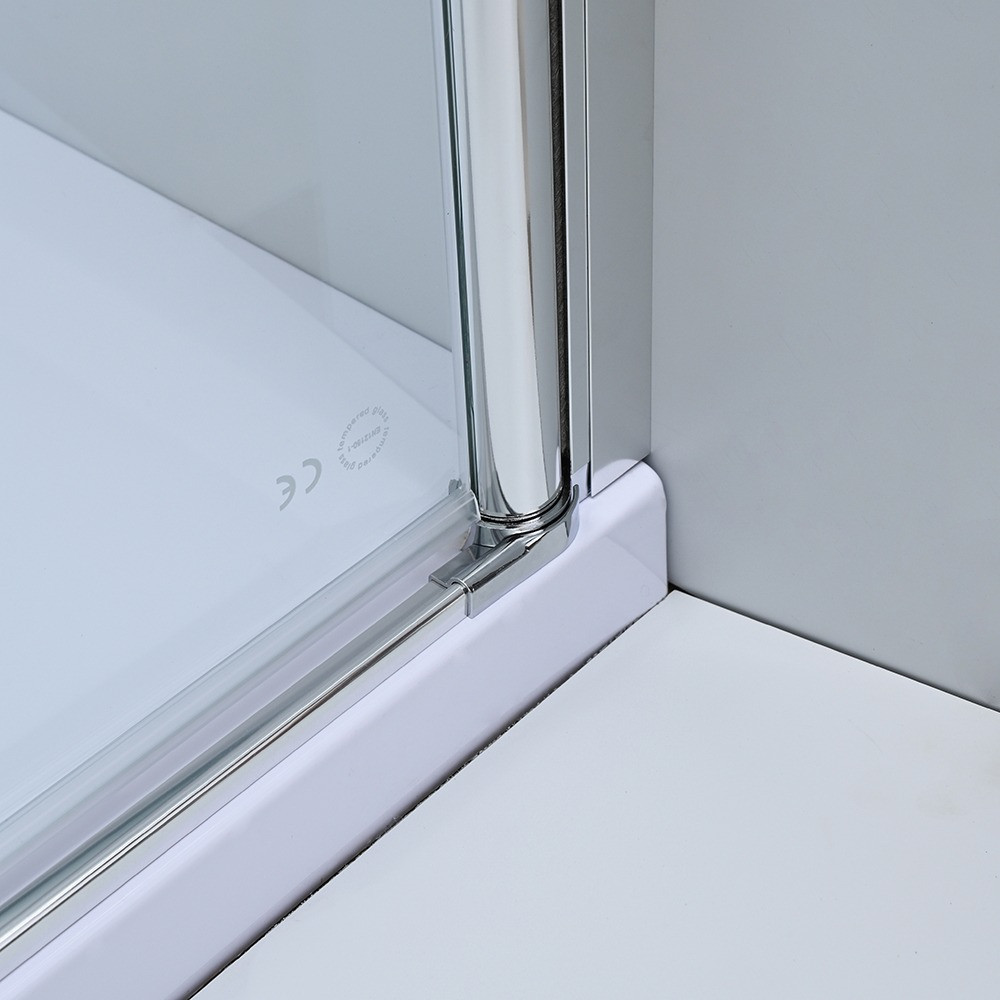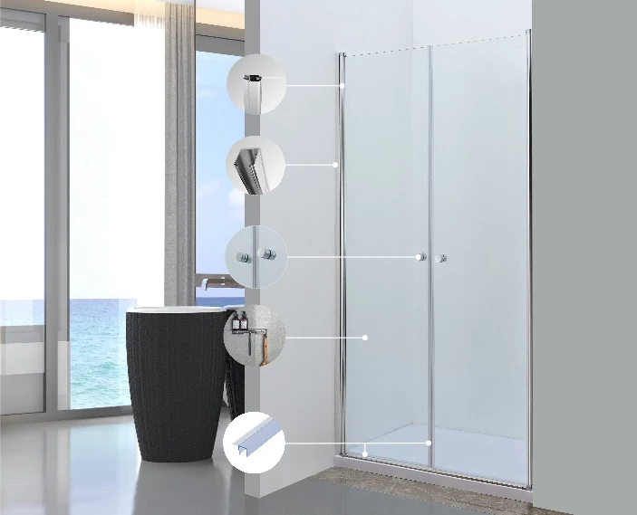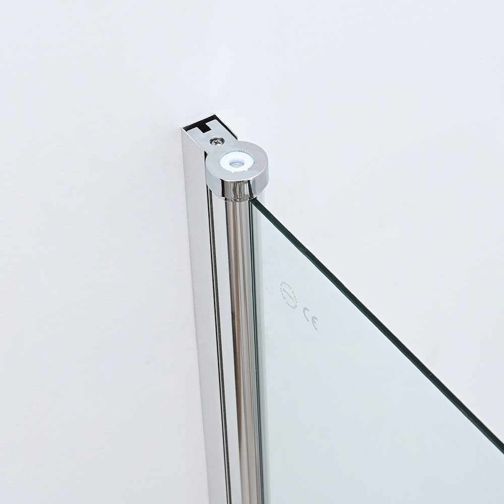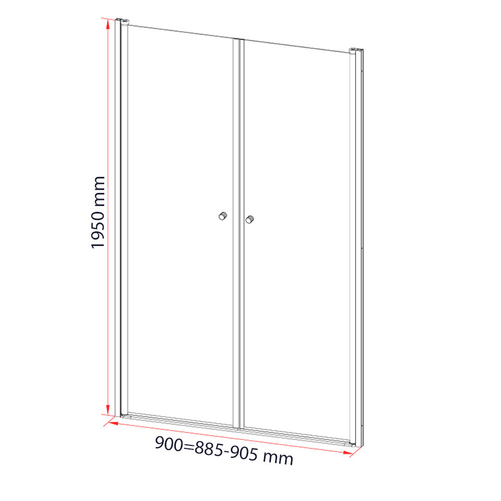 A zuhanyajtó Alumínium ötvözet polírozott profillal, 5 mm-es víztiszta edzett biztonsági üveggel és cink fogantyúval van ellátva. A modell 90 x 195 cm méretű, és 885-905 mm között állítható.