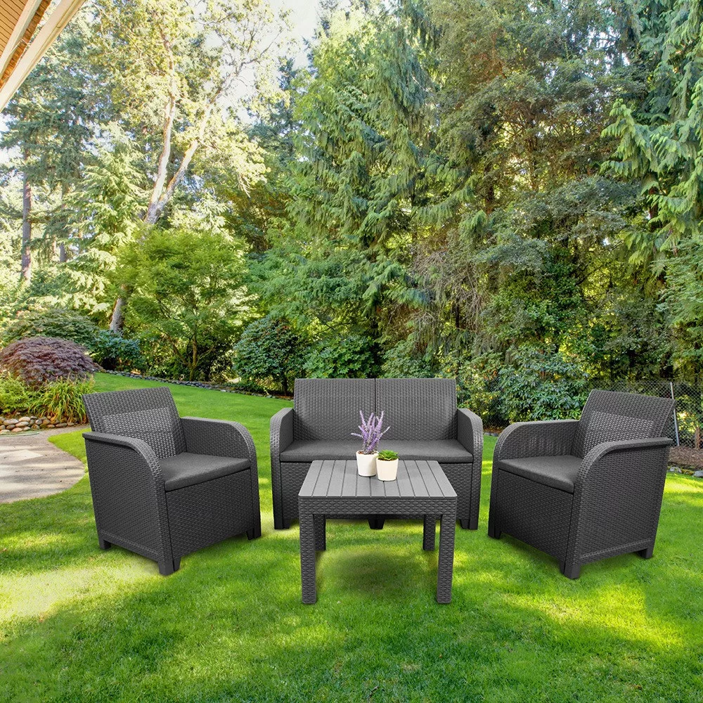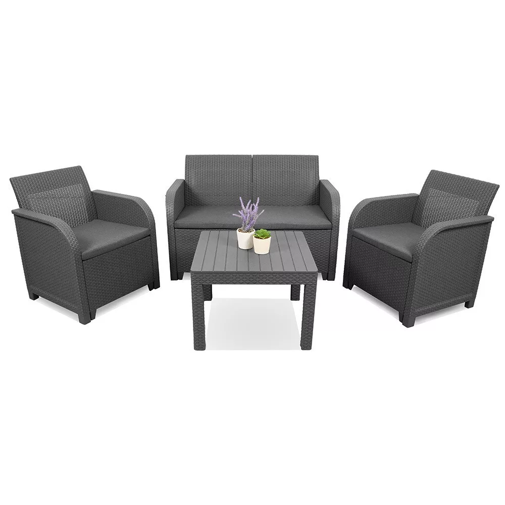 A Sanremo kerti bútor szett chicago asztallal nem veszíti el színét. Nem igényel különleges karbantartást, egy nedves rongy elegendő a szennyeződés eltávolításához. A kerti bútor szett egész évben a szabadban lehet, a fagy, az eső és a hó nem fog ártani neki.