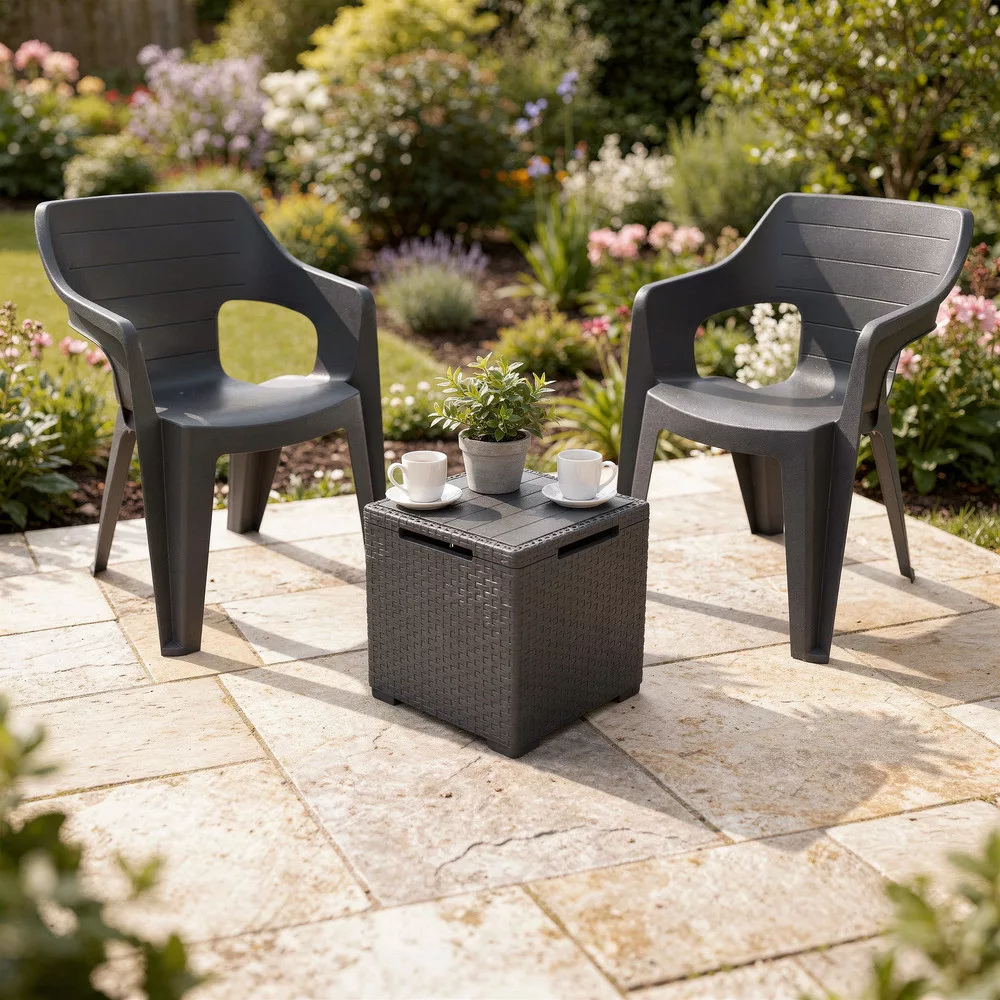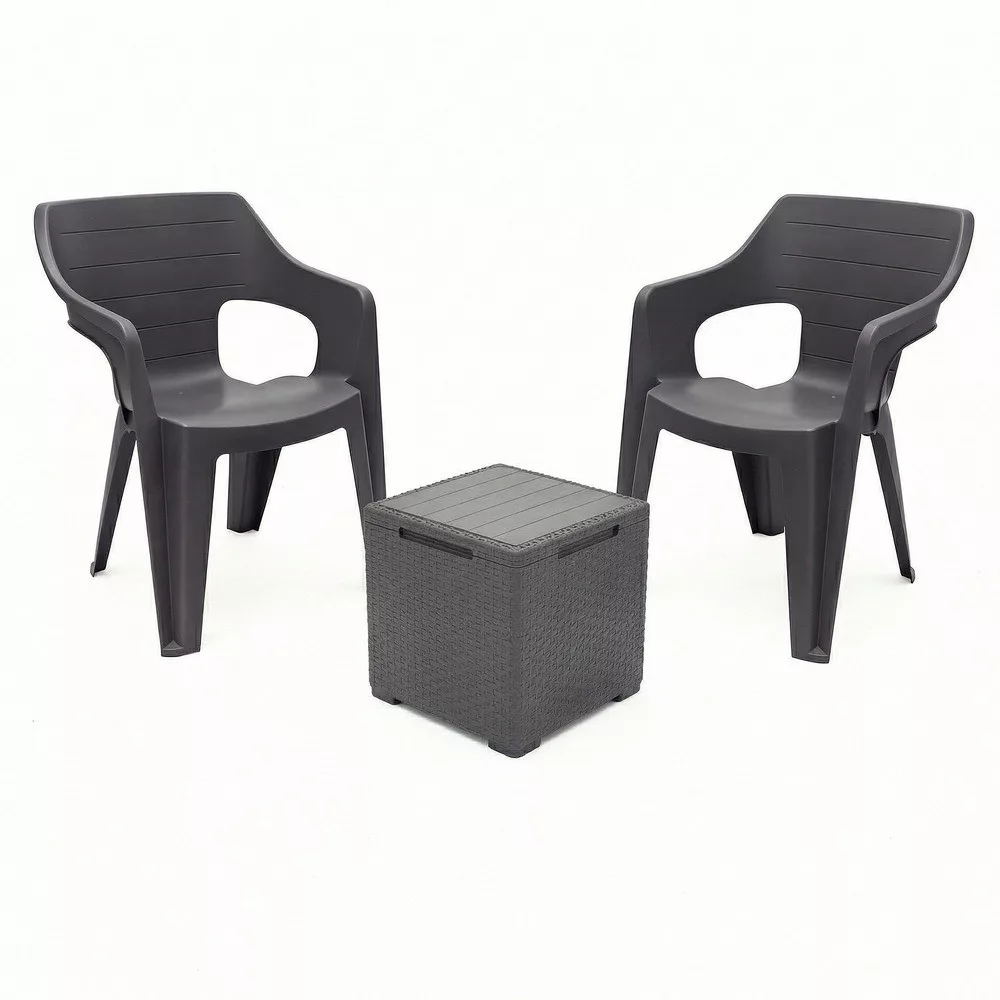 • 2 db Bilbao Lowback műanyag kartámaszos kerti szék grafit – 57 x 57 x 79 cm