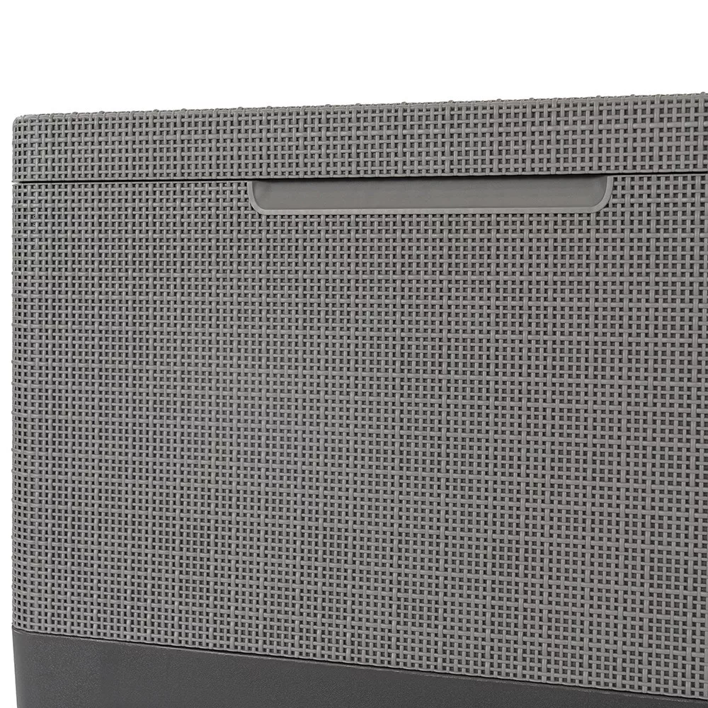 A Scandi jute tárolós asztal letisztult, modern formavilágot képvisel, amely illeszkedik a Scandi kollekció stílusához. A grafit–hűvös szürke árnyalat visszafogott és könnyen kombinálható különböző kültéri bútorokkal és burkolatokkal. A kompakt kialakítás lehetővé teszi, hogy kisebb teraszokon, erkélyeken vagy kertben is praktikus elhelyezést kapjon, miközben önálló bútordarabként is esztétikus megjelenést biztosít.
