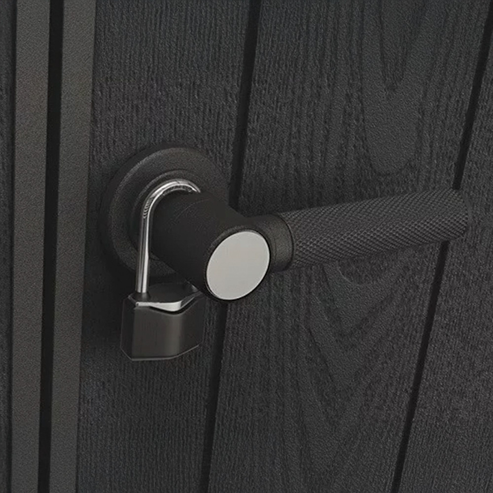 A Decocoat technológiával készült műanyag panelek természetes fa hatást keltenek, miközben teljesen gondozásmentesek. A megerősített acélszerkezet stabilitást biztosít, a lakattal zárható ajtó pedig extra védelmet nyújt. Méretei 216x218x226 cm.