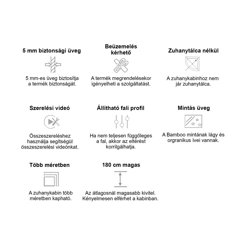 • Típus: Szögletes zuhanykabin zuhanytálca nélkül