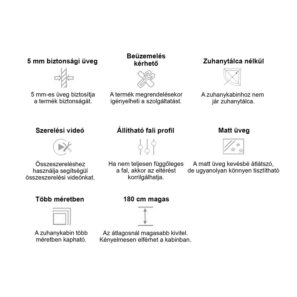 - Típus: szögletes zuhanykabin zuhanytálca nélkül