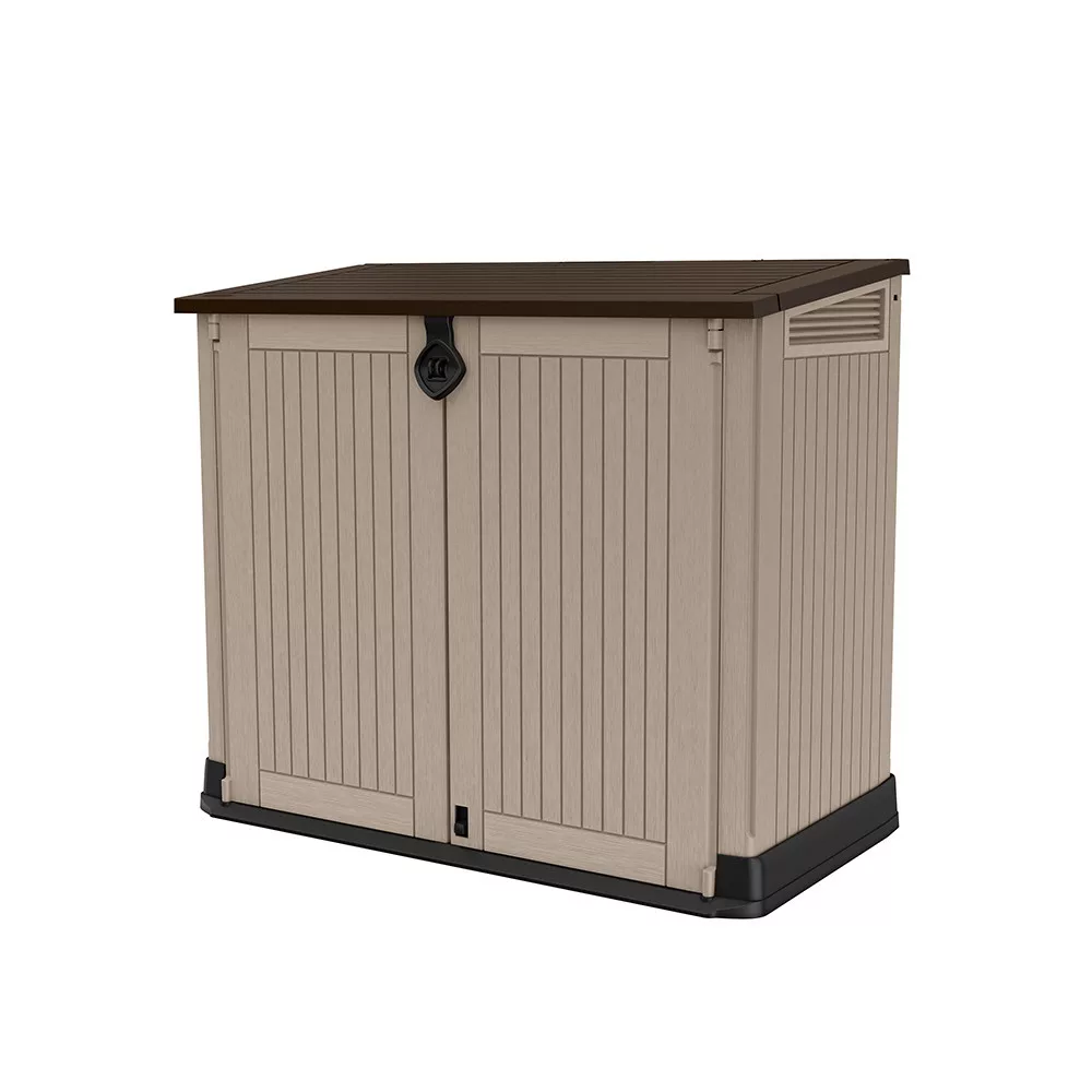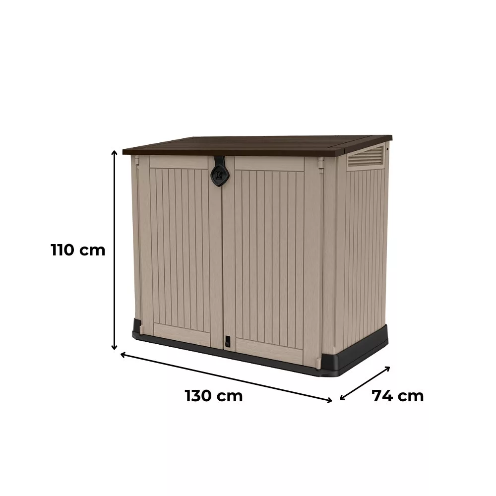 A Midi műanyag kerti tároló környezetbarát termék. A gyártáshoz felhasznált anyagok többsége újrahasznosításból származik. A téglalap alakú, dupla ajtó, 104,8 cm széles, mely rácsatolható zárral rendelkezik. A belső terek jól védettek a külső viszonyoktól, jól szellőzik , amelynek köszönhetően nem kell tartani a nedvesedéstől és a penészesedéstől. A Keter Store-It-Out-Midi szekrény további előnye a kiegészítő polcok felszerelésének lehetősége ( a polcok nem tartozékok).