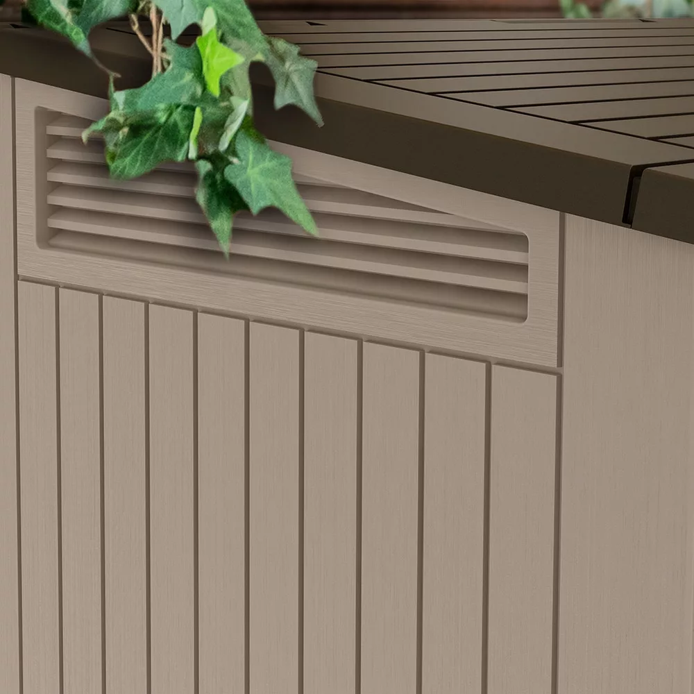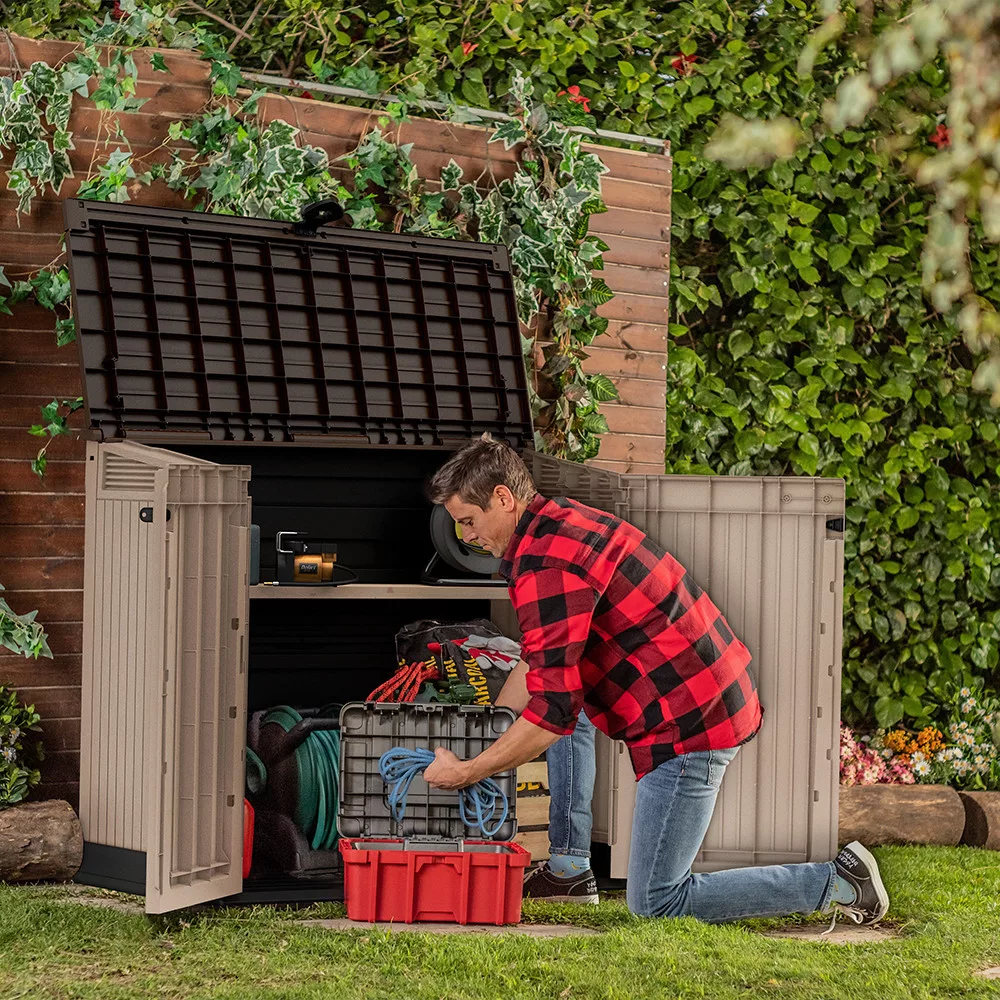 A Midi kerti tárolót a jól ismert és elismert Keter cég gyártotta, amely évek óta kiváló minőségű kerti felszerelést gyárt műanyagból.A Store It Out Midi kerti tároló nem igényel karbantartást, impregnálást vagy festést, mint például a természetes anyagokból készült hasonló termékek esetében. Ezen felül az anyag vízálló és UV-ellenálló. Nem hámlik, és nem veszíti el a színét. Hosszú ávekig élvezhtjük használatát.