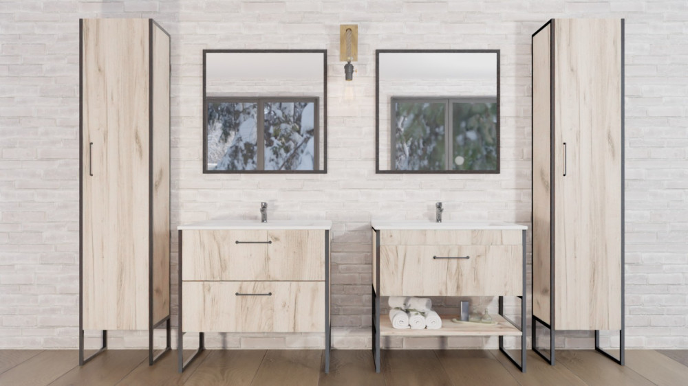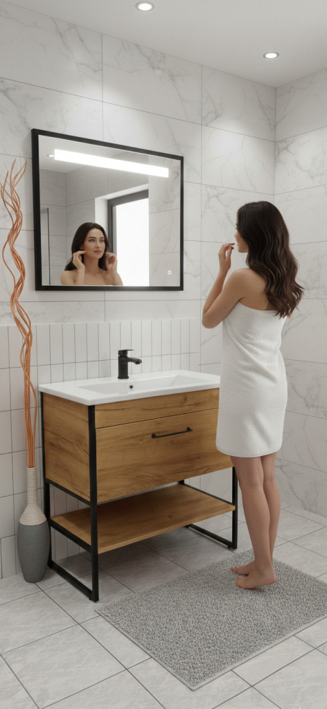 TMP IRON fürdőszobai tükör - FEKETE keret - szögletes - LED világítással - 75 x 68 cm