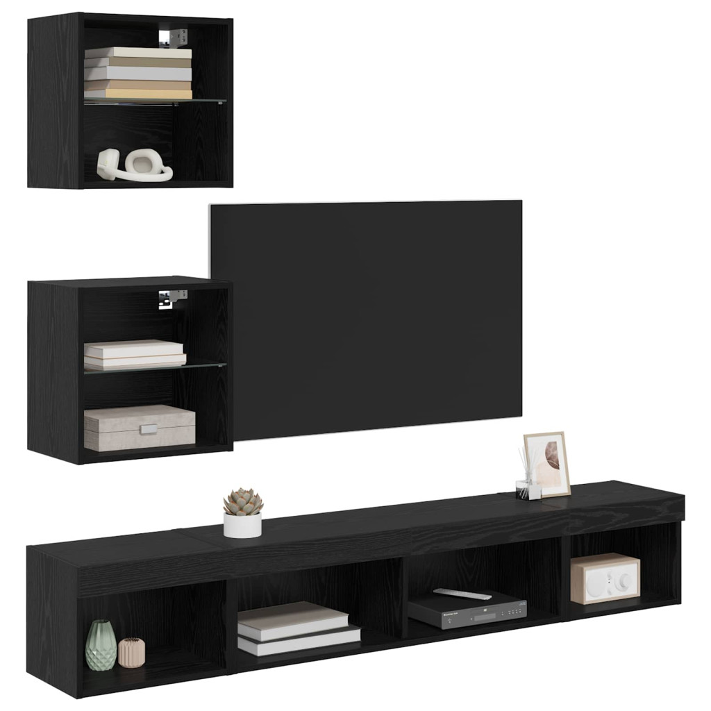TV Fali Egységek LED-del 5 pcs Fekete tölgy 100 x 30 x 30 cm Faanyag