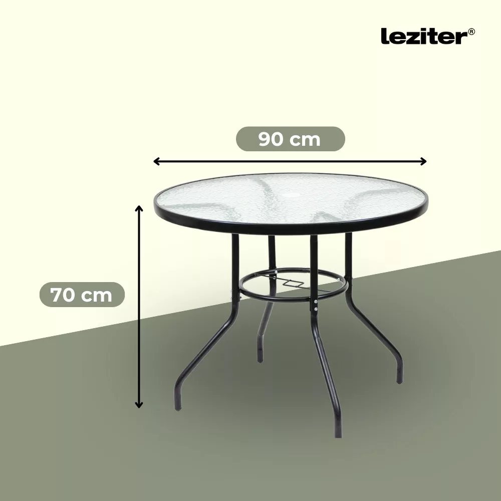 A bútorkészletet 4 fő számára tervezték, amely lehetővé teszi a bútorok használatát szeretteivel való találkozók során. Megfelelő magasságban tervezték, hogy kényelmesen ehessen ebédet vagy egyéb ételt. Az asztal szerkezetébe egy további lyuk került beépítésre az esernyő stabilizálására. A nagy távolságra elhelyezett lábak egyszerű kialakítása biztosítja a stabilitást.
