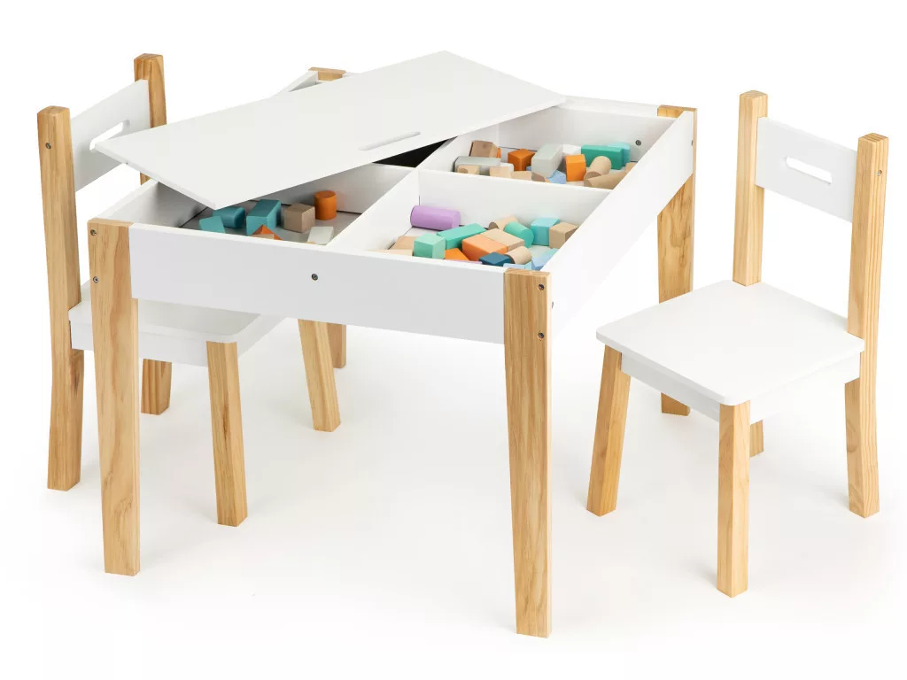 Az asztal kiválóan alkalmas arra, hogy a kis művészek alkotásaikat, toronyházakat és sok más kreatív dolgot alkossanak. Játék után az összes kiegészítő elrejthető az asztallap alatt, így mindig kéznél lesznek és használatra készek.