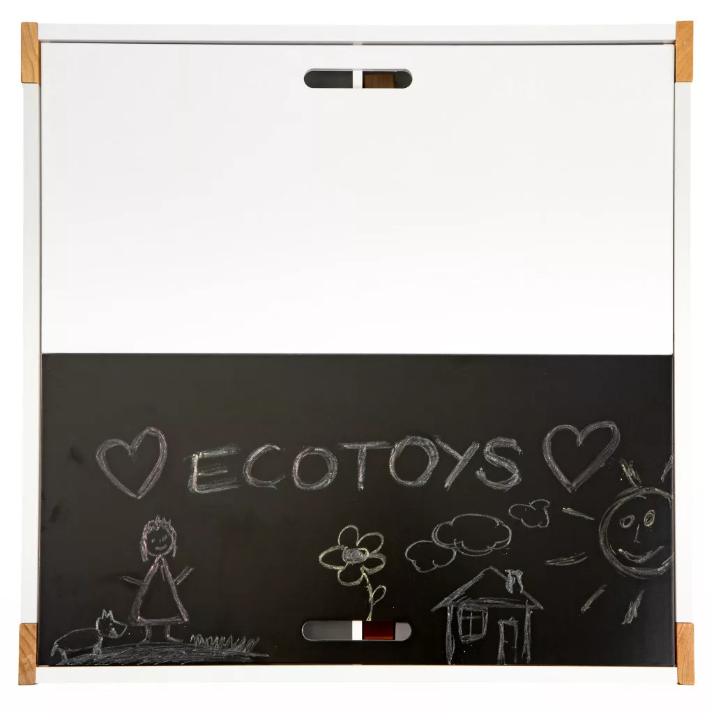 Az asztallap egyik része krétatáblává alakítható, csak meg kell fordítani, és máris használatra kész.
