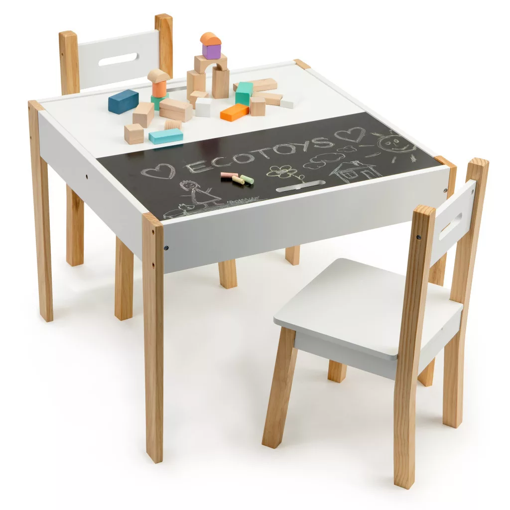 Többfunkciós asztal 2 db székkel krétatáblával