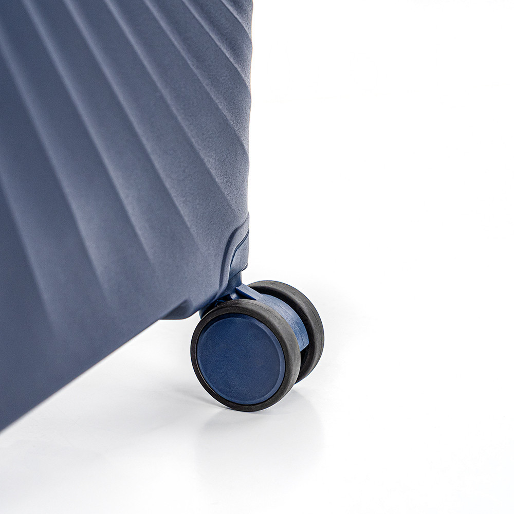 A négy dupla gumi kerék halk és gördülékeny mozgást biztosít, bármely irányban. A kiváló manőverezhetőség révén kényelmesen navigálhatsz szűk helyeken vagy zsúfolt repülőtereken is.