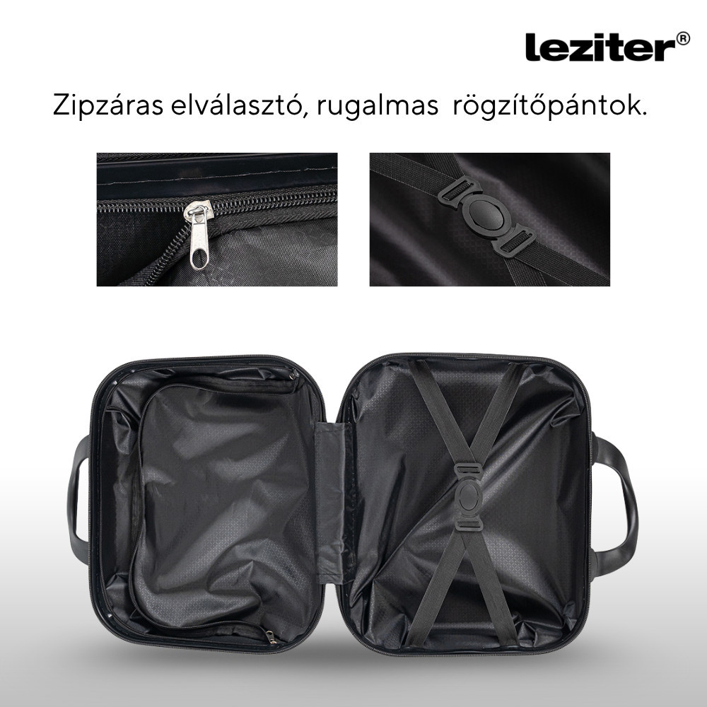 A cipzáras elválasztó rekesz és a rugalmas rögzítőpántok segítenek a ruhák és egyéb csomagok rendszerezésében, így a belső tér jól átlátható és könnyen pakolható marad. A hátoldali rögzítőpántnak köszönhetően pedig a bőrönd egyszerűen és biztonságosan ráhelyezhető egy nagyobb gurulós bőrönd teleszkópos húzószárára. Ez különösen hasznos, ha több poggyásszal utazol – szabadon maradnak a kezeid, és gördülékenyen haladhatsz a repülőtéren vagy akár a városban is.