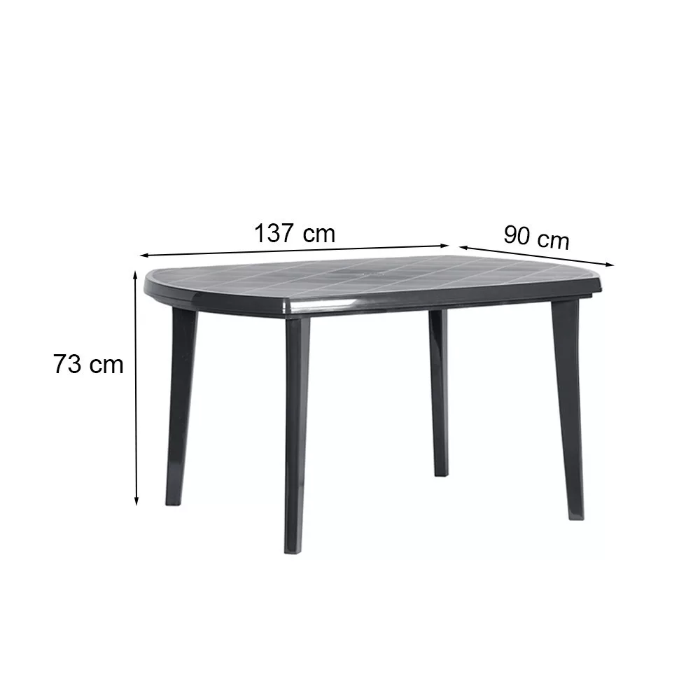 A szett méretének köszönhetően elhelyezhető nagyobb keretekben, vagy teraszokon is. A műanyag szék különleges kartámasszal rendelkezik, amely a stabil szerkezetet és az elegáns kivitelezést egyesíti. A szék tökéletesen illik mind a kertekben, teraszokon, az erkélyen, mind pedig a beltérben is. Szolid, tartós és az időjárás viszontagságainak és UV sugárzásnak ellenálló termék. Az ovális formájú asztal mindenki tetszését elnyeri, aki értékeli a letisztult stílust és az egyszerűséget. A termék összeszerelése könnyű, tisztítása egyszerű. Az asztal ellenáll a sérüléseknek, valamint az időjárás hosszantartó viszontagságainak.