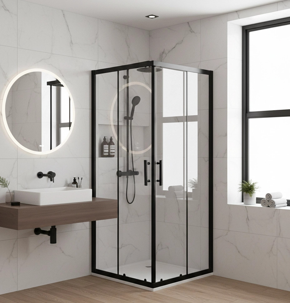 Viva AQUA Max Zuhanykabin SZÖGLETES FEKETE Profil - 6 mm víztiszta üveg - 90 x 90 x 190 cm