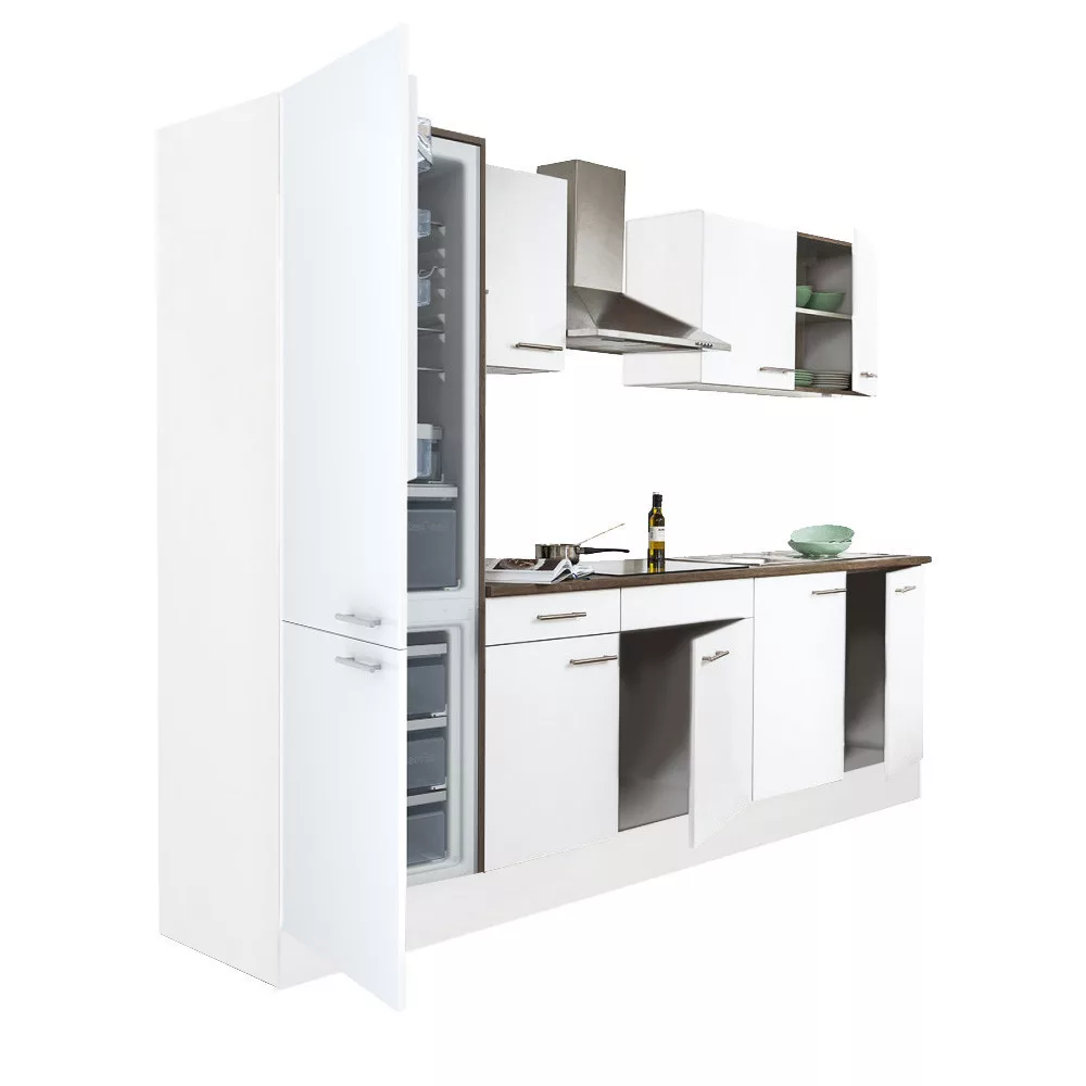 Yorki 270 konyhabútor fehér korpusz,selyemfényű fehér fronttal alulfagyasztós hűtős szekrénnyel