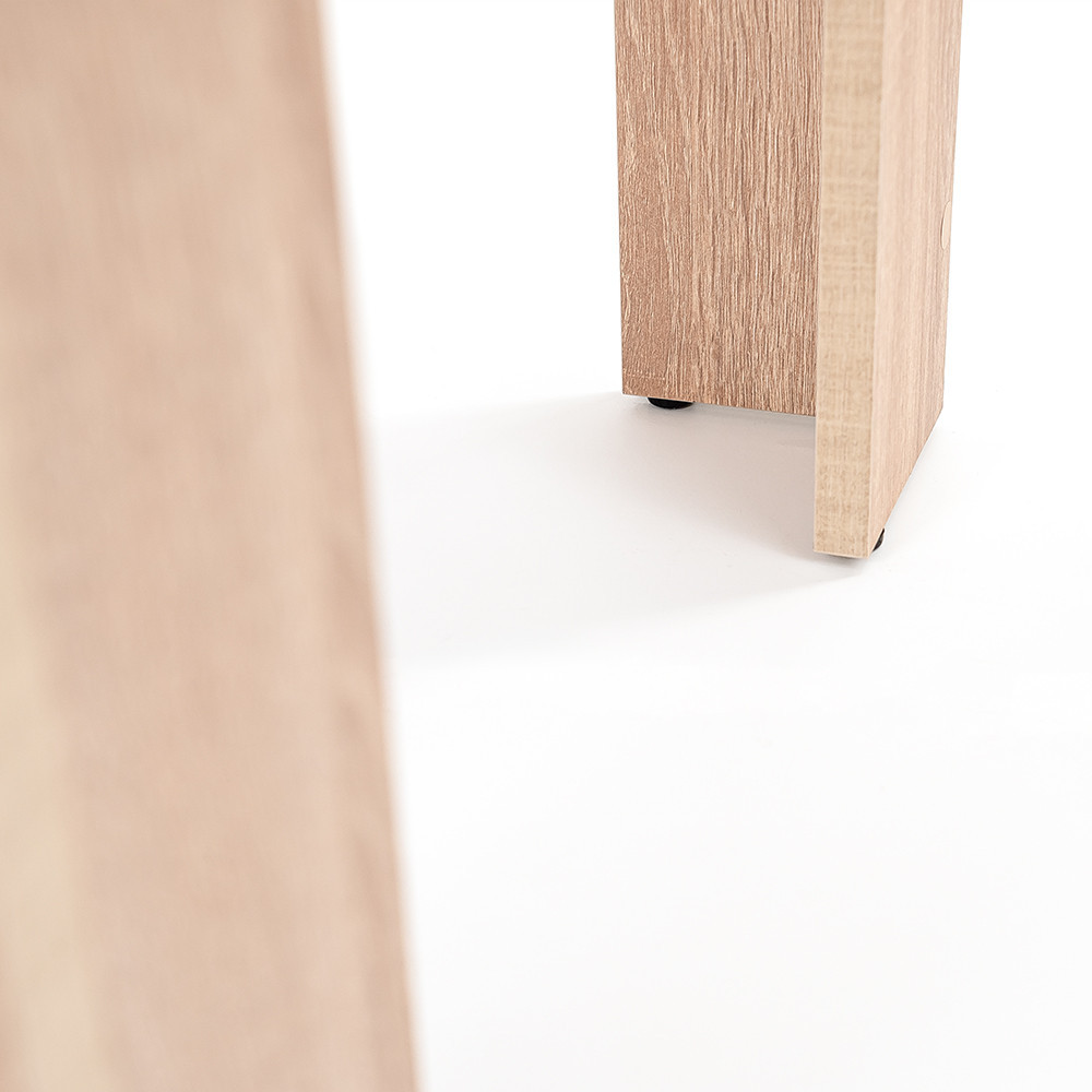 A sonoma tölgy mintázatú bútorlap elegáns és modern megjelenést kölcsönöz az étkezőnek vagy a nappalinak. A Yorki étkezőasztal nemcsak stílusos, hanem rendkívül praktikus is, mivel a lapra szerelt kivitel könnyűséget és kényelmet biztosít az összeszerelés során.