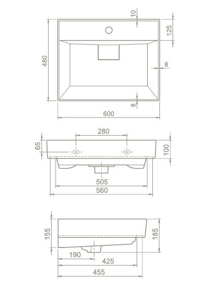 TMP SHARP 60 fali fürdőszobabútor - CeraStyle SHARP FEKETE mosdóval - 60 x 48 cm