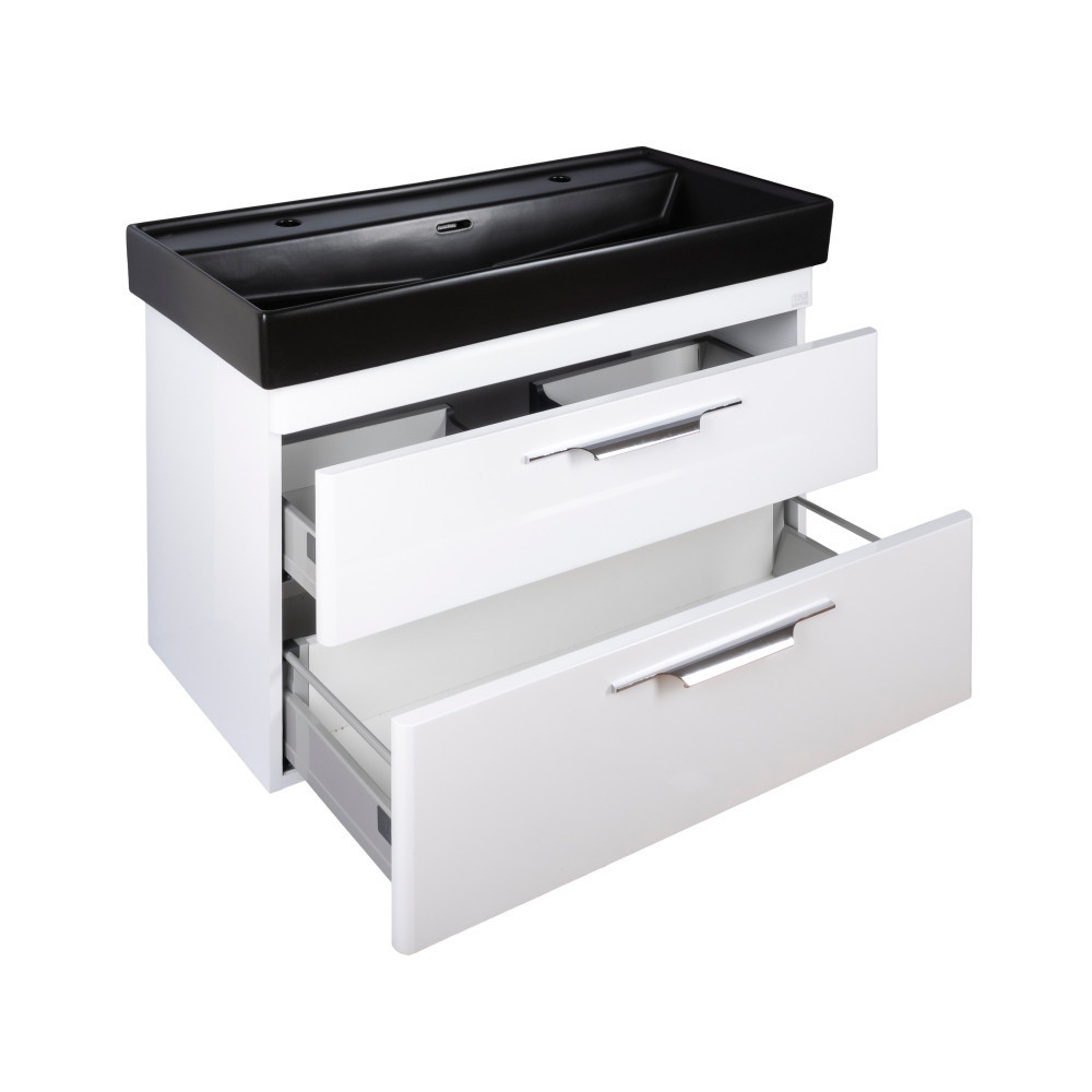 TMP LUX 100D fali fürdőszobabútor - CeraStyle SHARP FEKETE DUPLA csaplyukas mosdóval - 100 x 48 cm