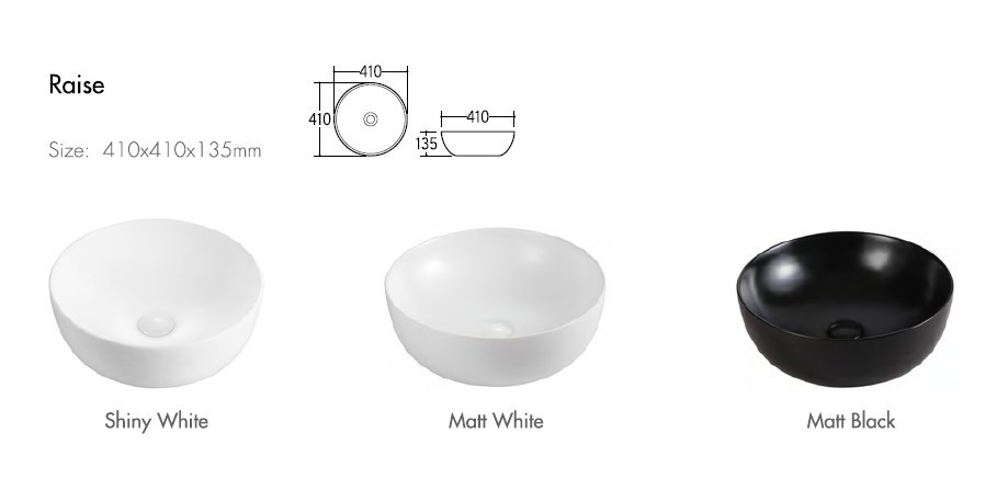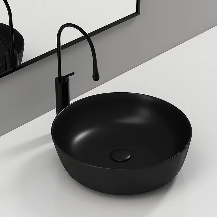 Eros RAISE - PULTRA ültethető - Top Counter - porcelán mosdó - MATT FEKETE - O - Ø 41 cm