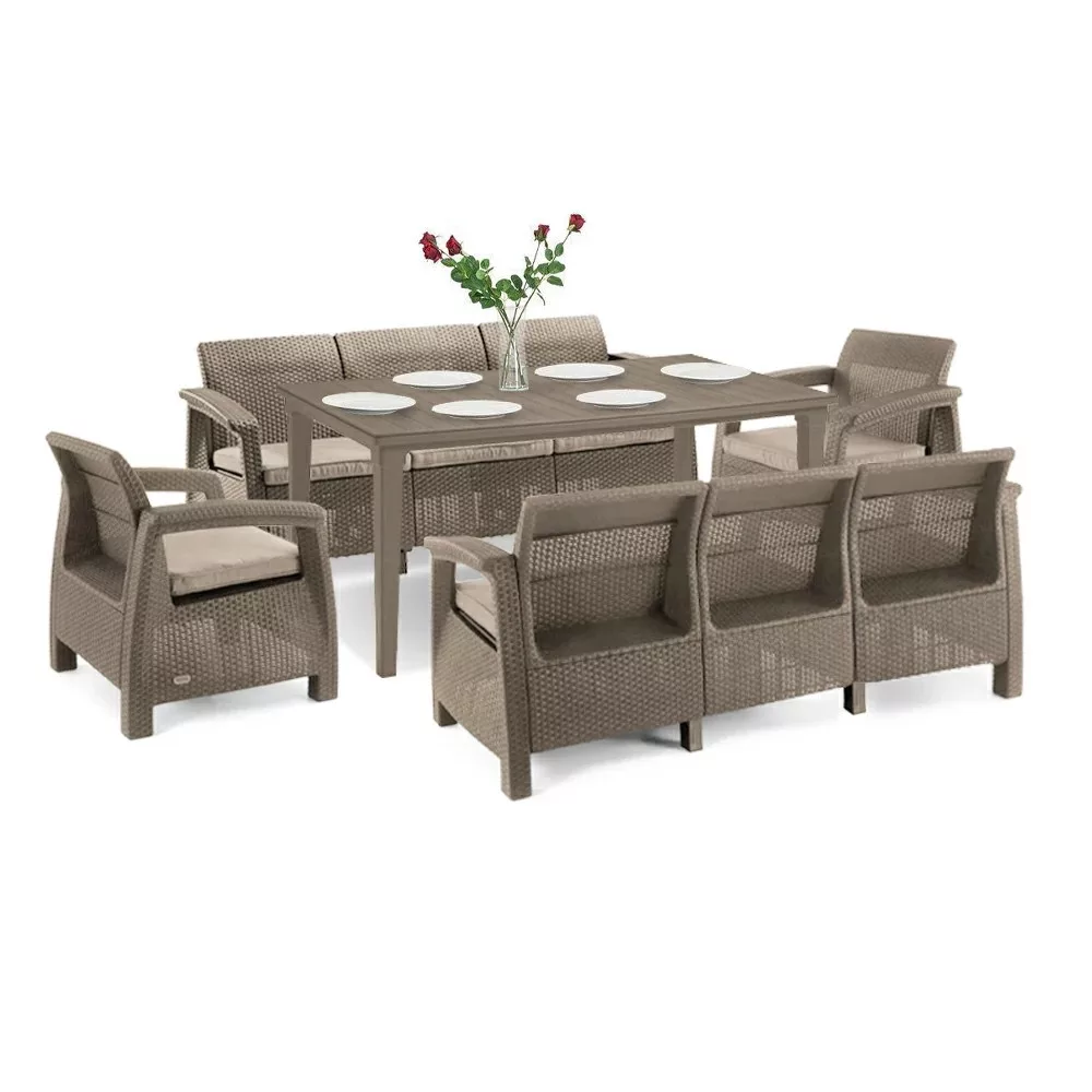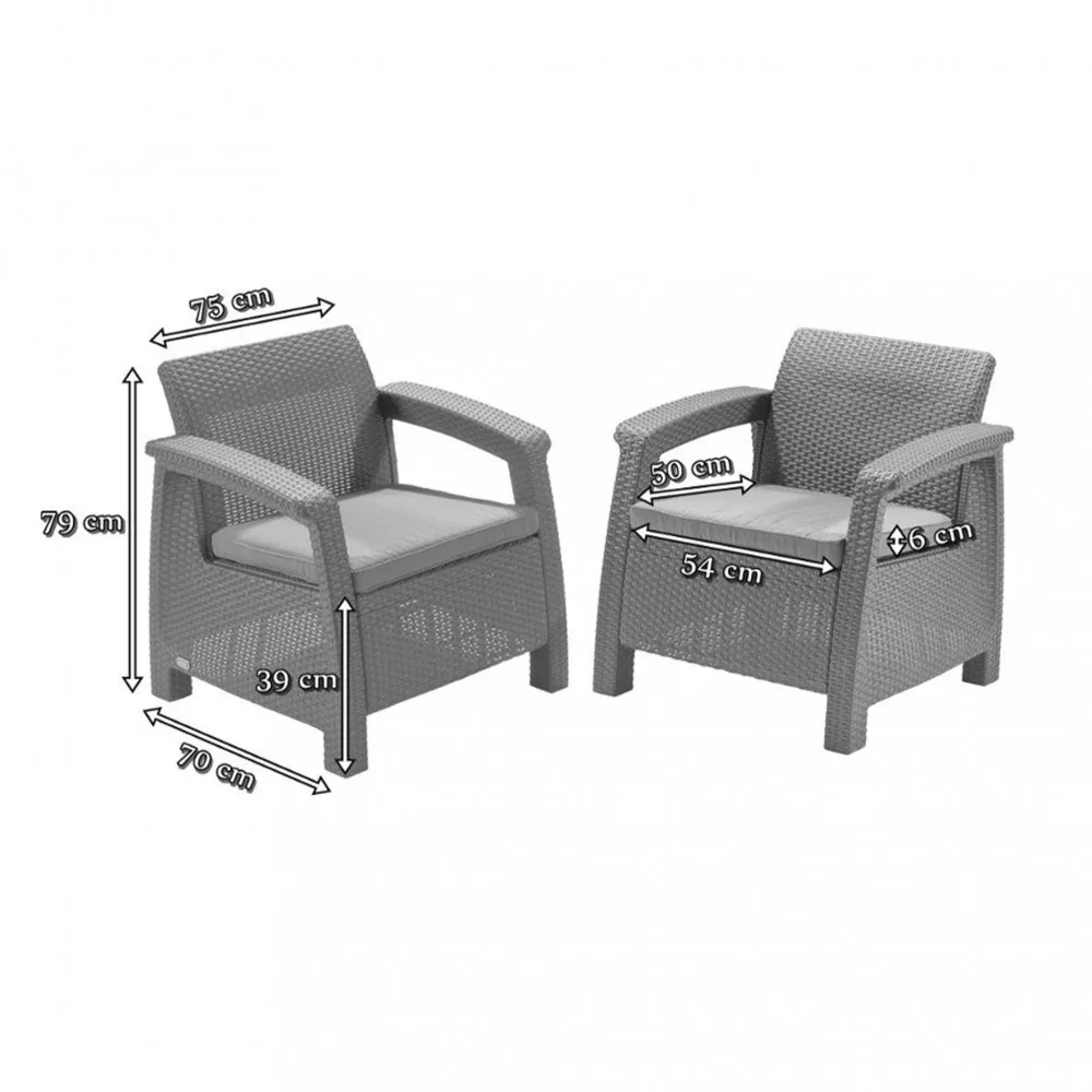 Első pillantásra úgy tünhet, hogy a bútorok rattanból készültek, de valójában egy kiváló minőségű müanyagból hozták létre, amely ellneáll a szélsőséges időjárási viszonyoknak. Lapos párnák, széles kartámaszok és kontúros háttámlák biztosítják a székek és kanapék kényelmét. A bútorgyártó a Curver márka, amely kiváló minőségű kerti bútorokat készít fröccsöntött műanyagból. Egy csoportban működik a közismert és népszerű Keter és Allibert márkákkal Lengyelországban.