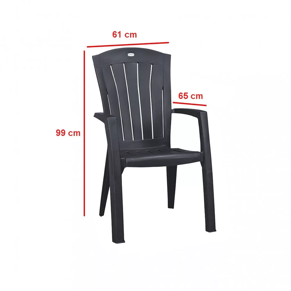 Széles kartámasszal felszerelt nagyon kényelmes kerti fotel. A terméket könnyű, de egyúttal stabil szerkezet és kiváló tartósság jellemzi és ellenáll az időjárás viszontagságainak. A széket nagyon könnyű tisztítani - a szék ápolásához egyedül egy nedves törlőkendőre van szükség.